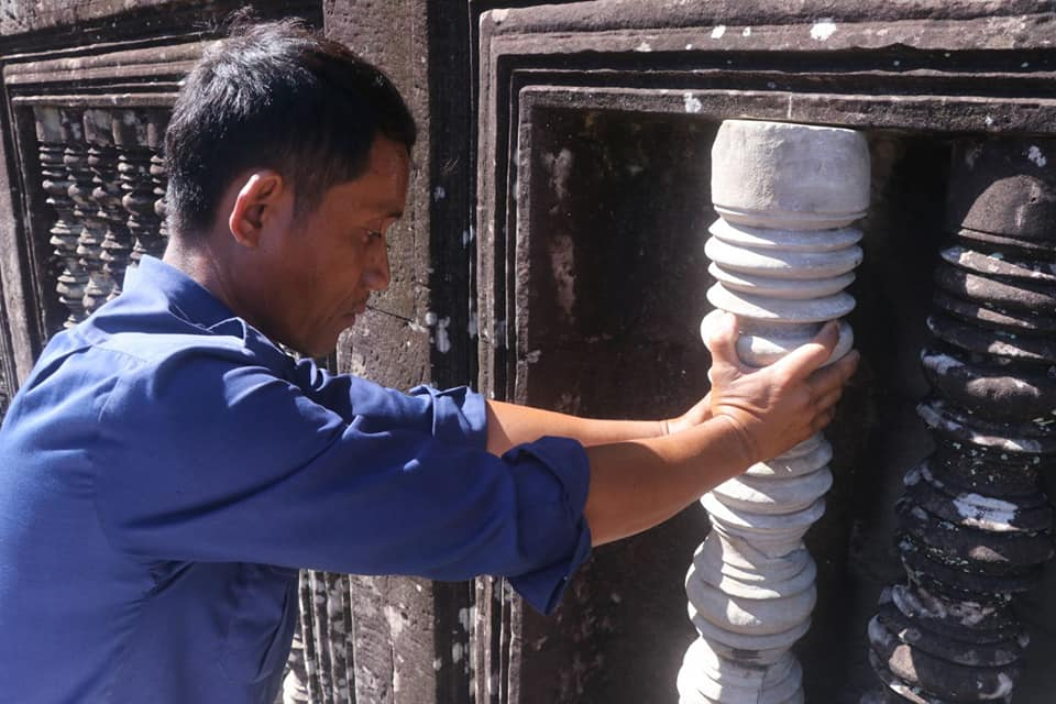 លោក សយ សុភារិន្ទ បុរាណវិទូ និងជាភ្នាក់ងារអភិរក្សប្រាសាទអង្គរវត្ត នៃនាយកដ្ឋានអភិរក្សប្រាសាទ និងបុរាណវិទ្យា មានប្រសាសន៍ថា ក្រុមការងាររបស់លោកបានចាប់ផ្តើមជួសជុលចម្រឹងបង្អួចធ្វើពីថ្មភក់ទាំងនេះ តាំងតែពីកំឡុងដើមខែមេសា ឆ្នាំ ២០២៣ មកម៉្លេះ។ ការងារជួសជុលនេះ ចាប់ផ្តើមឡើងតាំងពីការដើរប្រមូលបំណែកតូចធំរបស់ចម្រឹងបង្អួចដើម្បីយកមកផ្គុំគ្នា ដោយព្យាយាមមិនយកថ្មថ្មីមកជំនួសទេ។