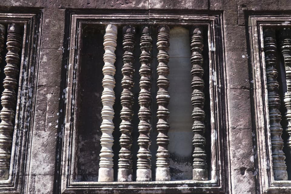 ចម្រឹងបង្អួចធ្វើពីថ្មភក់មានទម្ងន់ជាង ៥០-៦០ គីឡូក្រាម កម្ពស់ជាង ១.៧២ ម៉ែត្រ ដែលអ្នកជំនាញបានរៀបចំដំឡើងឡើងវិញនៅតាមកន្លែងដើមនេះ ធ្លាប់ទទួលរងការខូចខាតធ្ងន់ធ្ងរ និងជ្រុះធ្លាក់នៅរាយប៉ាយជាយូរមកហើយ។