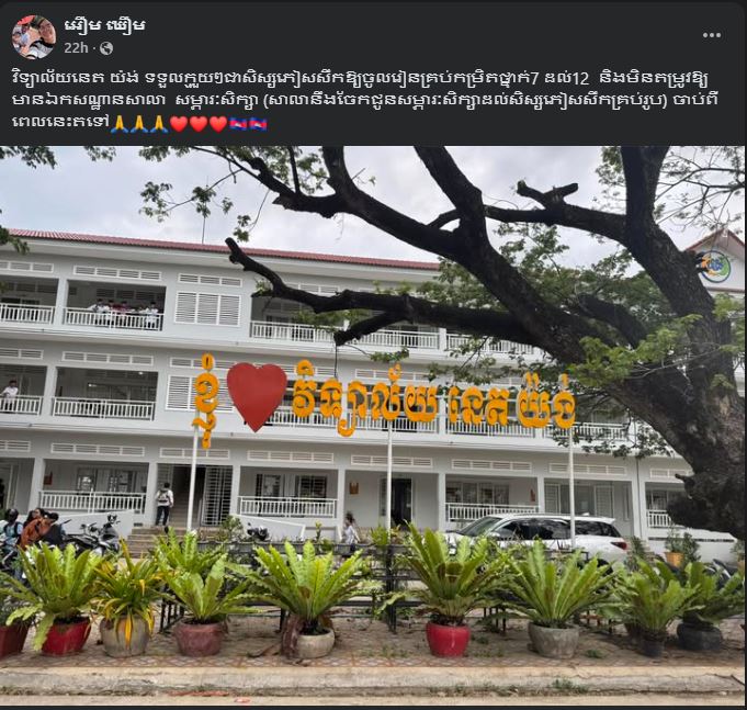 តាមរយៈវិទ្យាល័យខាងលើបានឱ្យដឹងថា វិទ្យាល័យ នេត យ៉ង់ ខេត្តបាត់ដំបងប្រកាសទទួលសិស្សានុសិស្សដែលជាជនភៀសសឹកមកពីគ្រប់តំបន់នៅតាមជាយដែនគ្រប់កម្រិតទី ៧ ដល់ទី ១២ ឱ្យចូលរៀន ដោយមិនតម្រូវឯកសណ្ឋានសាលា និងសម្ភារៈសិក្សានោះទេ។