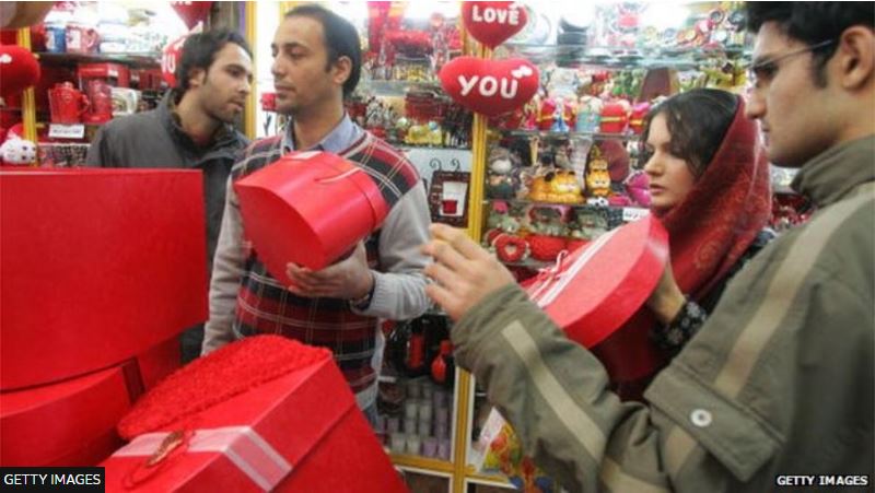 បើទោះបីជាបច្ចុប្បន្នការជូនផ្កា និងសូកូឡានៅក្នុងថ្ងៃបុណ្យនៃក្ដីស្រលាញ់ ១៤ កុម្ភៈ មានប្រជាប្រិយភាព និងមានការកើនឡើងច្រើននៅក្នុងប្រទេសអ៊ីរ៉ង់ ប៉ុន្តែអាជ្ញាធរប្រទេសមួយនេះបានចាត់ទុកពិធីបុណ្យមួយនេះជាទំនៀមទម្លាប់របស់លោកខាងលិចប៉ុណ្ណោះ។ អាជ្ញាធរបានចុះបង្ក្រាបនិងហាមឃាត់មិនឱ្យមានសកម្មភាពនិងការជួញដូររបស់ទាំងនោះនៅក្នុងថ្ងៃនៃក្ដីស្រលាញ់នោះទេ បើទោះបីជាភោជនីយដ្ឋានធំៗត្រូវបានកក់ពេញៗស្ទើរតែគ្មានកន្លែងអង្គុយ ហាងជាច្រើនដែលដាក់លក់តុក្កតាខ្លាឃ្មុំ ប្រអប់បេះដូង ត្រូវបានលក់អស់គ្មានសល់ក៏ដោយ។