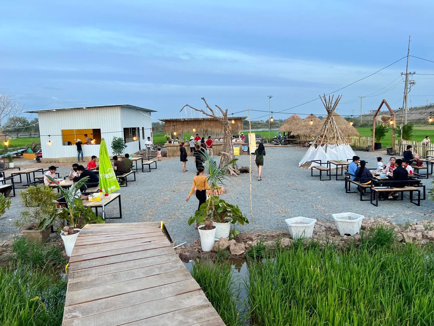 នៅទីនេះអ្នកទេសចរអាចរីករាយជាមួយម្ហូបបែបខ្មែរជាច្រើន ភេសជ្ជៈគ្រប់ប្រភេទ និងបរិយាកាសស្រុកស្រែពិតៗ។ សម្រាប់អ្នកដែលមានបំណងទៅលេងនៅទីនេះ យកល្អគួរតែទៅដល់ឲ្យបានមុនថ្ងៃលិច ដើម្បីបានមើលថ្ងៃលិចសន្សឹមៗផង និងមិនសូវក្ដៅខ្លាំងផង។ គួរបញ្ជាក់ថាកន្លែងលំហែកាយមួយនេះគឺមិនដូចជាអាហារដ្ឋានផ្សេងៗនោះទេ អតិថិជនត្រូវតម្រូវឲ្យគិតលុយមុនបន្ទាប់ពីបានទិញម្ហូបនៅតូបតូចៗលក្ខណៈស្រុកស្រែ ហើយបន្ទាប់មកពួកគេតម្រូវឲ្យបម្រើសេវាកម្មដោយខ្លួនឯង។ នៅចាំដល់ណាទៀត សម្រាប់ប្រិយមិត្តដែលចូលចិត្តសាកល្បងធ្វើអ្វីថ្មីៗ ដើម្បីសាកថ្មជីវិត គួរតែទៅសាកល្បងសេវាកម្មថ្មីនៅវាលស្រែក្បែរស្ពានអ្នកលឿងម្ដង៕