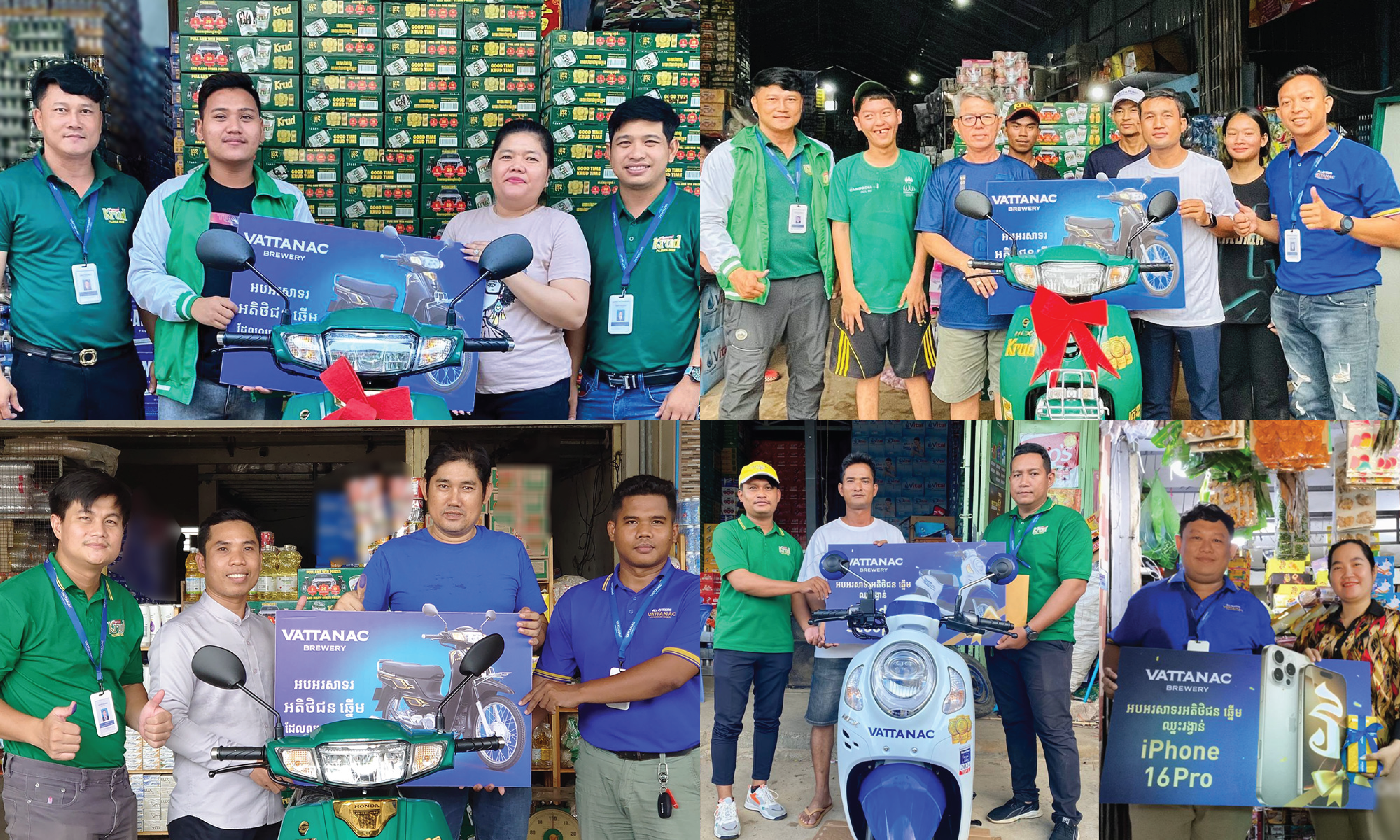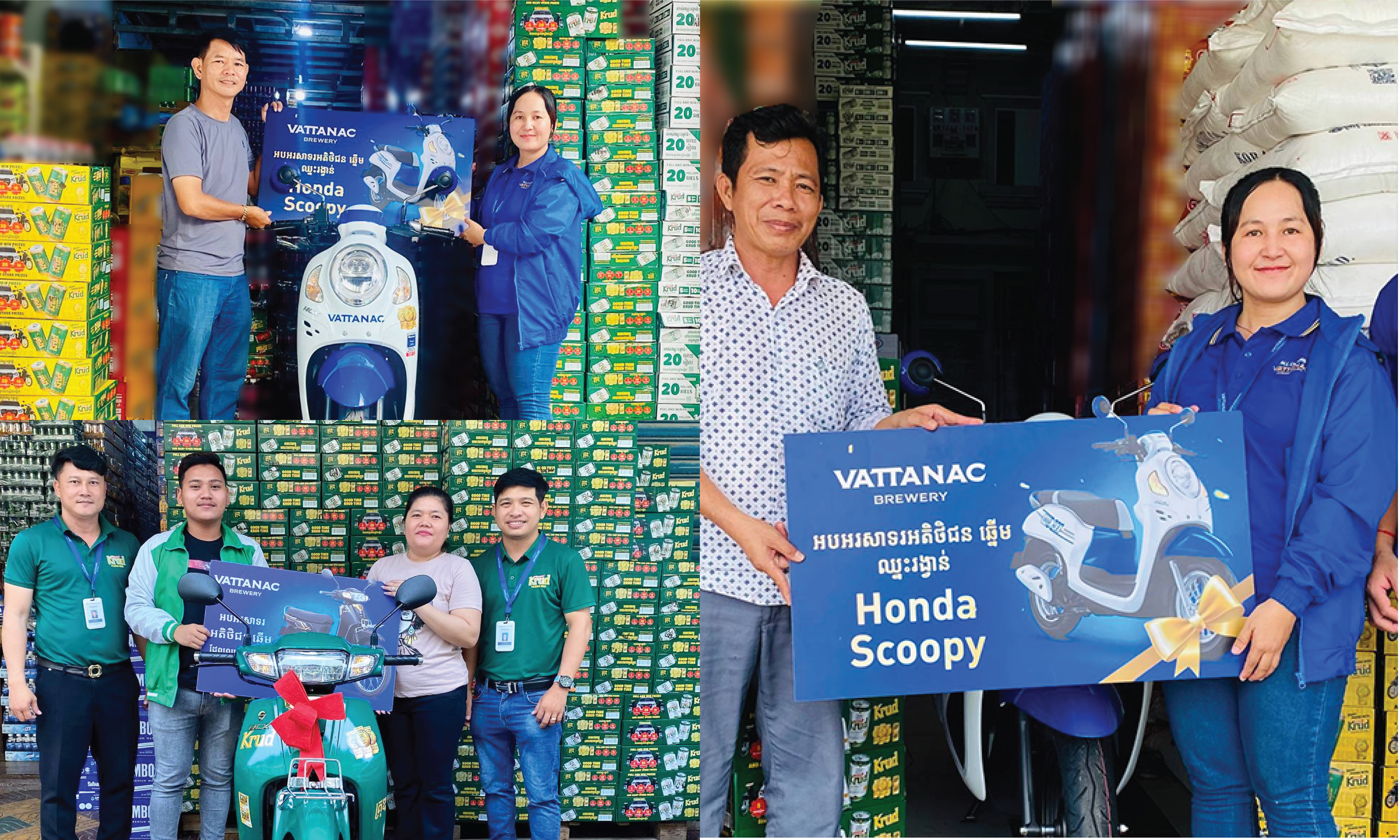 ថាអ្នកទិញទៅ ឈ្នះរង្វាន់សន្ធឹកសន្ធាប់ពីក្រវិលកំប៉ុងរបស់ផលិតផលក្រុមហ៊ុន វឌ្ឍនៈ ប៊្រូវើរី អ្នកលក់ក៏ទទួលបានរង្វាន់លើកទឹកចិត្តជាច្រើនផងដែរពី វឌ្ឍនៈ ប្រ៊ូវើរី។ វឌ្ឍនៈ ប្រ៊ូវើរី បន្តចែករង្វាន់ជារៀងរាល់ថ្ងៃដល់អតិថិជននៅគ្រប់ទិសទី ហើយថែមទាំងបានផ្តល់រង្វាន់ជាច្រើនដូចជាម៉ូតូហុងដា ឌ្រីម ម៉ូតូហុងដា ស្កូបពី ស៊េរីទំនើប ទូរស័ព្ទ iPhone 15 Pro ទូរស័ព្ទ iPhone 16 Pro ដ៏ថ្មីសន្លាងជាច្រើនគ្រឿង ដល់ម្ចាស់ហាងលក់ភេសជ្ជៈឆ្នើមជាច្រើននាក់ ដែលកំពុងចរាចរចែកចាយម៉ាកសញ្ញាគ្រុឌ វឌ្ឍនៈ ដ្រាហ្គិន និងវី-អាកទីវ បន្តទៅជូនអតិថិជនដោយផ្ទាល់។