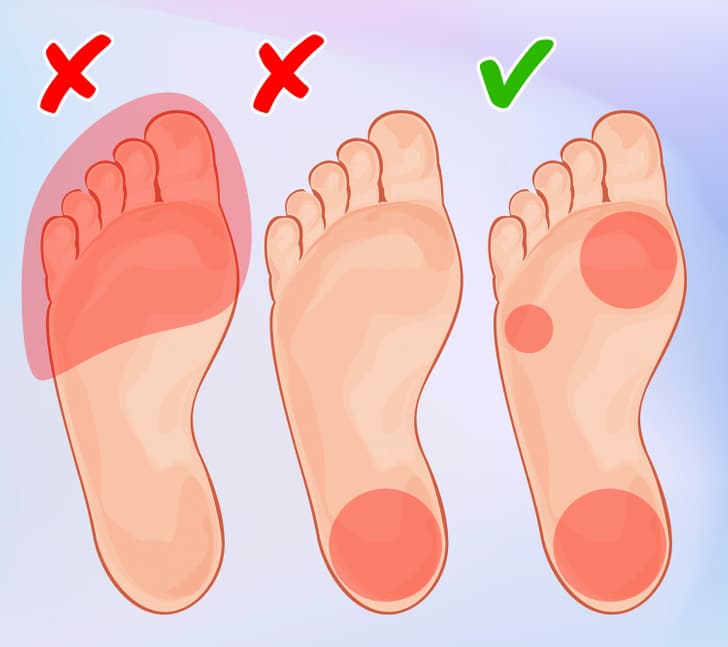 មនុស្សមួយចំនួននៅពេលដែលធ្វើចលនាអង្គុយងើបបែបនេះភាគច្រើនពួកគេទម្លាក់សម្ពាធទាំងអស់លើតែផ្នែកម្រាមជើងខាងមុខ ឬកែងជើងខាងក្រោយ។ ប៉ុន្តែការធ្វើបែបនេះនឹងធ្វើឱ្យយើងពិបាកក្នុងការលើកទម្ងន់ខ្លួនឯងឡើងវិញ ឬងាយបង្កជាការរមួលក្រពើដែរ។ ដូច្នេះហើយប្រសិនបើយើងចង់ធ្វើចលនាអង្គុយងើប យើងត្រូវដាក់សម្ពាធលើបាតជើងដោយប្រើប្រាស់ផ្នែកខាងក្រោមនៃម្រាមមេជើង ផ្នែកខាងក្រោមនៃម្រាមកូនជើង និងកែងជើងទើបត្រឹមត្រូវ។ ដោយសារការទម្លាក់សម្ពាធដងខ្លួនដោយចំនុចទាំងបីនេះទប់ខ្លួន យើងនឹងកាន់តែមានភាពងាយស្រួលក្នុងការធ្វើចលនាមួយនេះ។ ប្រសិនបើយើងមានការពិបាកក្នុងការធ្វើចលនានេះពេលពាក់ស្បែកជើង យើងអាចដោះចេញបាន។