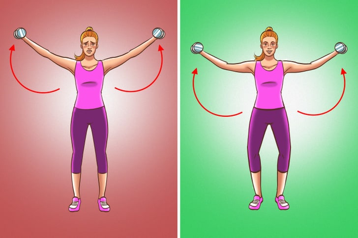 ៦. កាយវិការលើកដុំដែកខុស (Lateral raises)