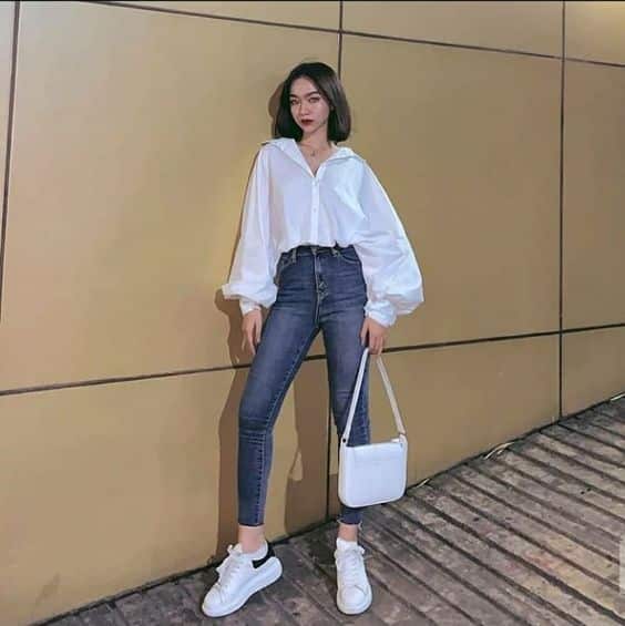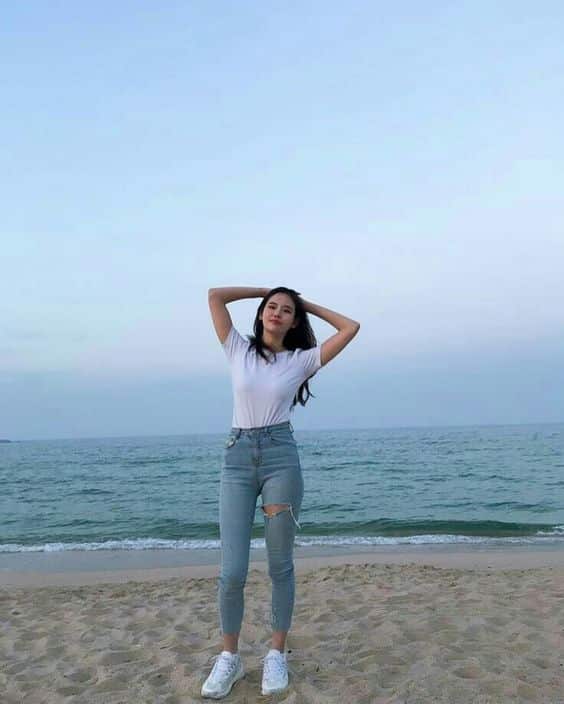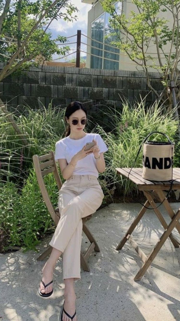 ស្ទីល៍ដែលបង្ហាញខាងក្រោមពិតជាស្អាត និងមិនពិបាកក្នុងការប្ដូរឡើយ ហើយថែមទាំងជាទី ពេញនិយមរបស់នារីៗបច្ចុប្បន្នថែមទៀតផល។ ក្រោយដូរខោជំនួសសំពត់រួច ស្បែកជើងអាចជាប្រភេទស៊ក ប៉ាតា ឬកែងដែលពាក់ចេញពីវត្តស្រាប់ក៏បាន ព្រោះថាសម្លៀកបំពាក់ដែលបង្ហាញនេះ មិនរើសឡើយ។ បើចង់ឲ្យកាន់តែស្រស់ស្អាត អាចថែមអាវពីក្រី និងវ៉ែនតាខ្មៅ ឬវ៉ែនតាពណ៌ផ្សេងៗ។ ចង់ដឹងថាវាស្រស់ស្អាតប៉ុណ្ណា អាចអូសចុះដល់ខាងក្រោម ហើយជ្រើសរើសមួយដែលខ្លួនស្រលាញ់ ហើយស័ក្ដិសមខ្លួនឯង៖