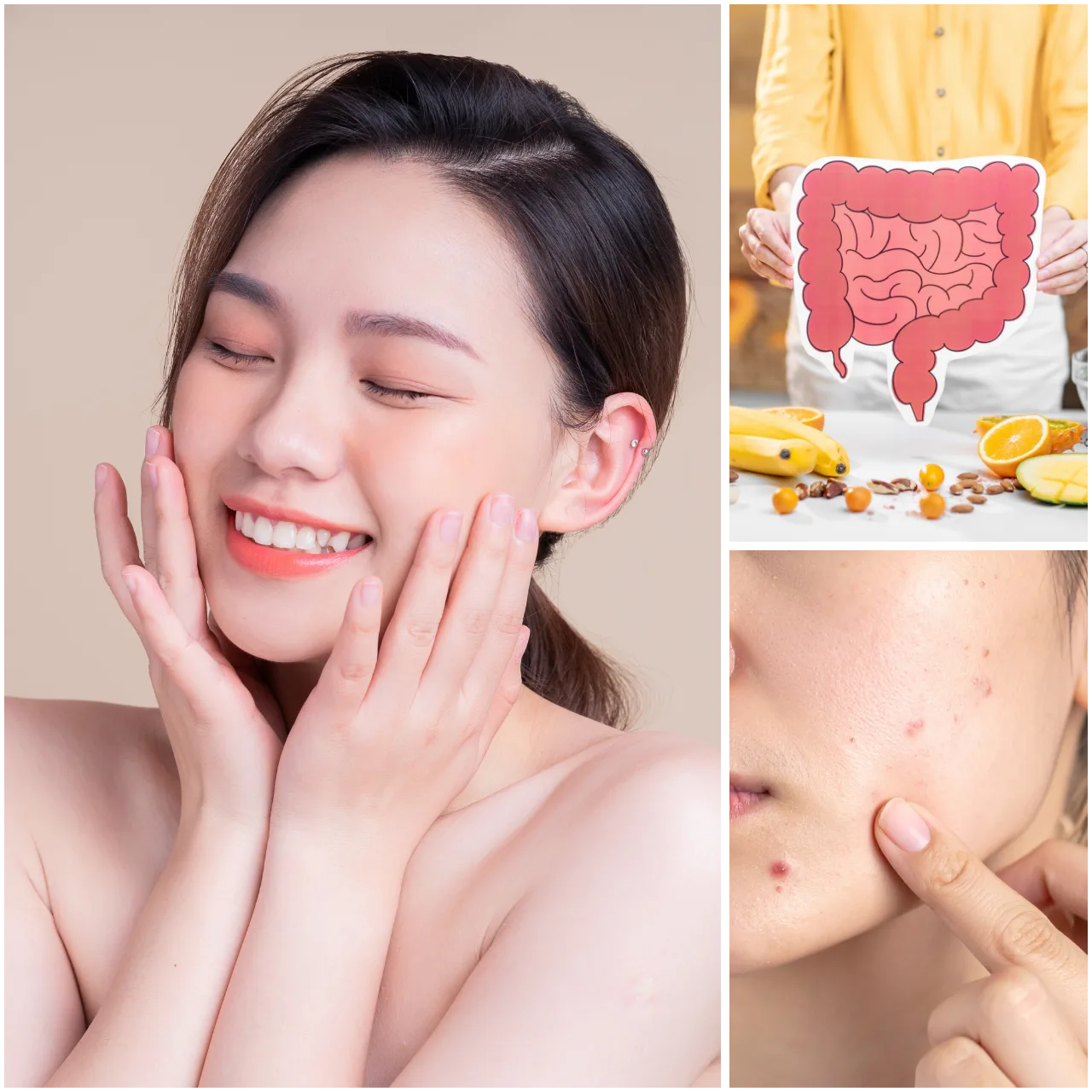 នៅពេលដែលពោះវៀនធ្វើការមិនប្រក្រតី បាក់តេរីអាក្រក់នឹងផលិតជាតិពុល ដែលនឹងជ្រាបចូលចរន្តឈាមវិញ បណ្ដាលឱ្យមានការរលាកនានា រួមទាំងស្បែកផងដែរ។ ក្រៅពីនេះ ពោះវៀនមានតួនាទីចម្រាញ់សារធាតុចិញ្ចឹម។ ដូច្នេះ ប្រសិនបើប្រព័ន្ធរំលាយអាហារដំណើការមិនល្អ ស្បែកនឹងខ្វះវីតាមីនចាំបាច់ ដែលមានតួនាទីជួសជុលស្បែកដែលខូចខាត។