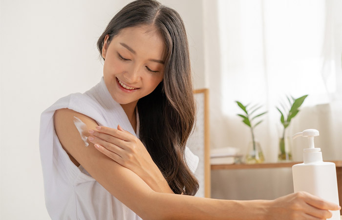 ៣. លាបឡេការពារកម្តៅថ្ងៃជាមុនសិន បន្ទាប់មកលាបឡេផ្តល់សំណើម