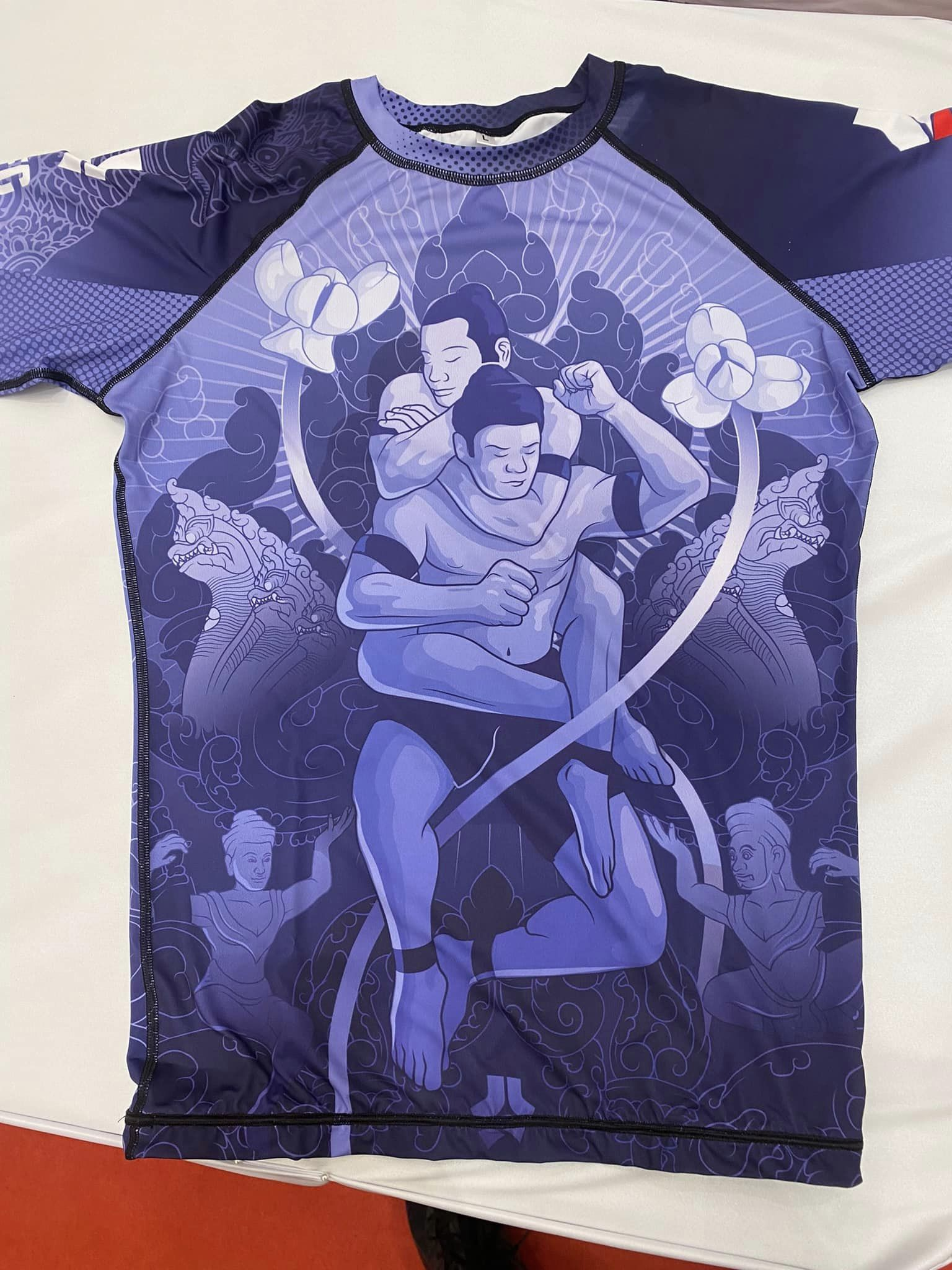 សហព័ន្ធកីឡាជឺជីតស៊ូកម្ពុជាបានឲ្យដឹងថា «ផ្អែកលើចម្លាក់ជញ្ជាំងដែលរកឃើញនៅត្រើយខាងកើតនៃប្រាសាទអង្គរវត្ត ដែលបានច្នៃប្រឌិត ដោយវិចិត្រករផ្សេងៗគ្នា ហើយទីបំផុតបានច្នៃទៅជា Rashguard ដ៏អស្ចារ្យដែលរចនាដោយវិចិត្រករ Chifumi»។