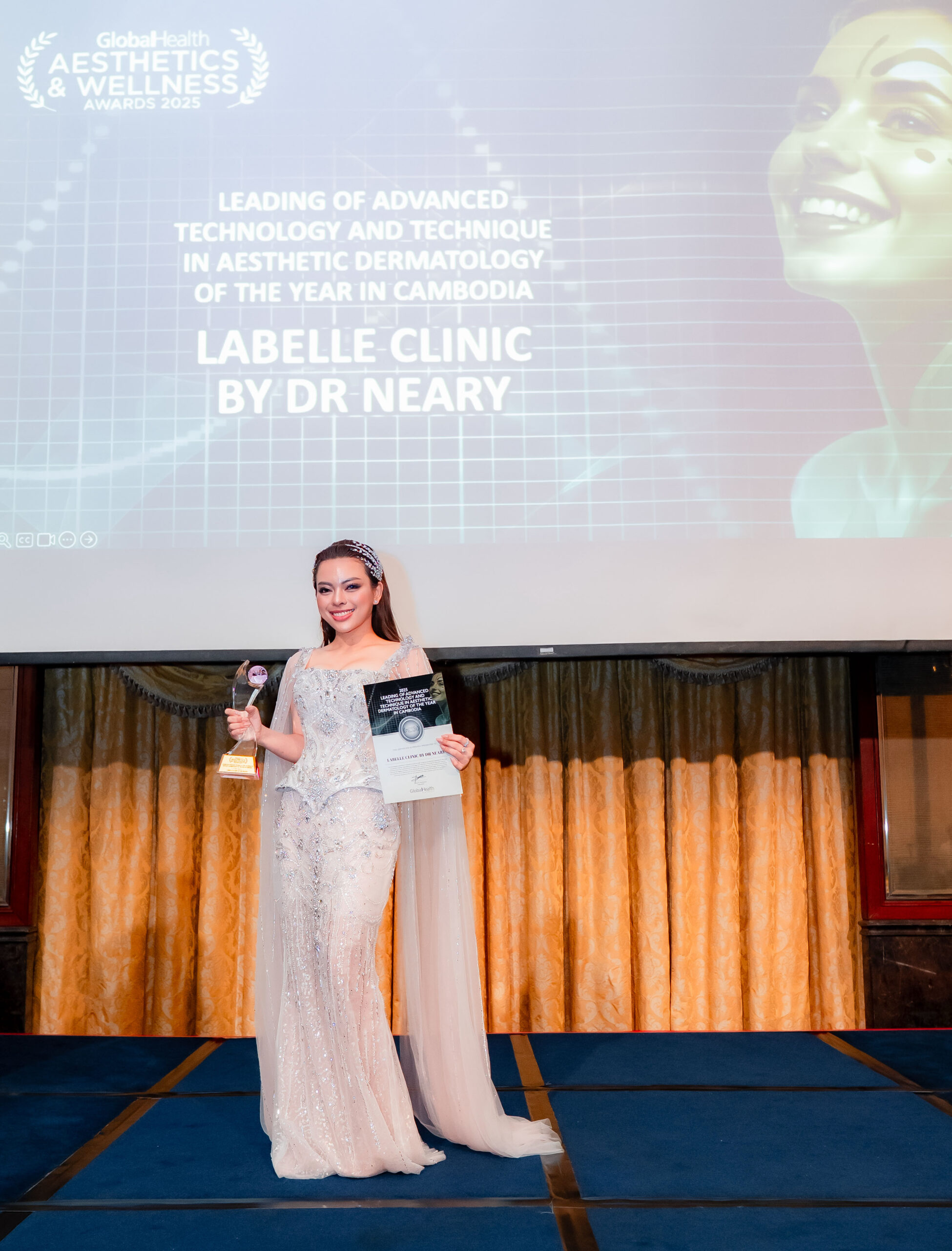 ពិតជាមានមោទកភាពណាស់ដែលគ្លីនិកឡាប៊ែលជា គ្លីនិកកូនខ្មែរទទួលបានពានរង្វាន់ថ្នាក់អន្តរជាតិជាគ្លីនិកឈានមុខគេនៅប្រទេសកម្ពុជាលើផ្នែកបច្ចេកវិទ្យានិងបច្ចេកទេសក្នុងវិស័យសើស្បែកនិងកែសម្ផស្សដោយមិនវ:កាត់ប្រចាំឆ្នាំ២០២៥ ( Leading of Advanced Technology and Technique in Aesthetic Dermatology of the Year in Cambodia ) ពីស្ថាប័នសុខភាពពិភពលោក ( Global Health Asia Pacific ) ដែលបានប្រារព្ធឡើងកាលពីថ្ងៃទី ១២ ខែតុលា ឆ្នាំ២០២៥ នៅប្រទេសសិង្ហបុរី ។