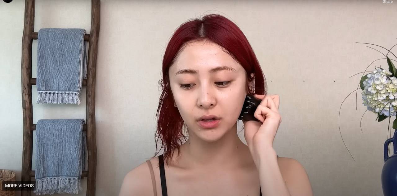 បន្ទាប់មក Yunjin ក៏បានធ្វើជំហានបន្តដោយការប្រើបន្ទះសម្លីជូតមុខ (toner pad) មកជូតសម្អាតមុខ ហើយក៏បានបិតទុកឱ្យលើមុខបន្តិចដើម្បីឱ្យជាតិសំណើមជ្រាបចូលក្នុងស្បែកមុខឱ្យកាន់តែជ្រៅ។ ក្រោយមកទៀតនាងបានលាបសេរ៉ូមដែលត្រូវជាមួយស្បែកមុខឱ្យសព្វហើយសឹមប្រើឧបករណ៍ម៉ាស្សា Gua Sha ដើម្បីជួយសម្រូលឱ្យសារធាតុសេរ៉ូមចូលកាន់តែជ្រៅ និងសម្រួលចលនាសរសៃឈាមលើផ្ទៃមុខផងដែរដោយផ្ដោតជាពិសេសនៅត្រង់ថ្ពាល់ ថ្គាម និងសៀតផ្កា។