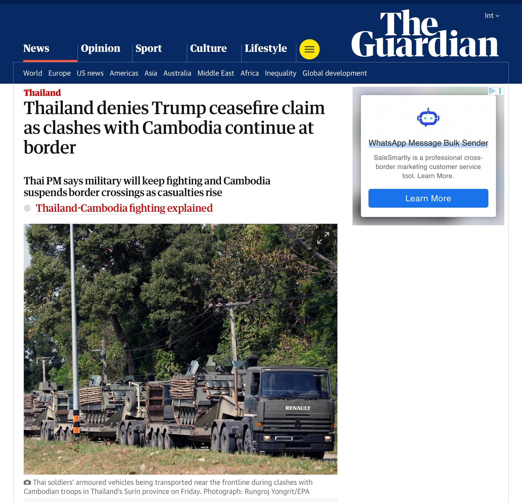 បណ្ដាសារព័ត៌មានអន្តរជាតិធំៗនិងល្បីលើពិភពលោកបានបង្ហាញវត្តមានក្នុងប្រទេសកម្ពុជានៅក្នុងហេតុការណ៍បាញ់ និងទម្លាក់គ្រាប់បែកមកលើតំបន់ជាច្រើនក្នុងប្រទេសកម្ពុជាដែលបណ្ដាលឱ្យទាហាននិងជនស៊ីវិលជាច្រើននាក់ស្លាប់-រងបួស។