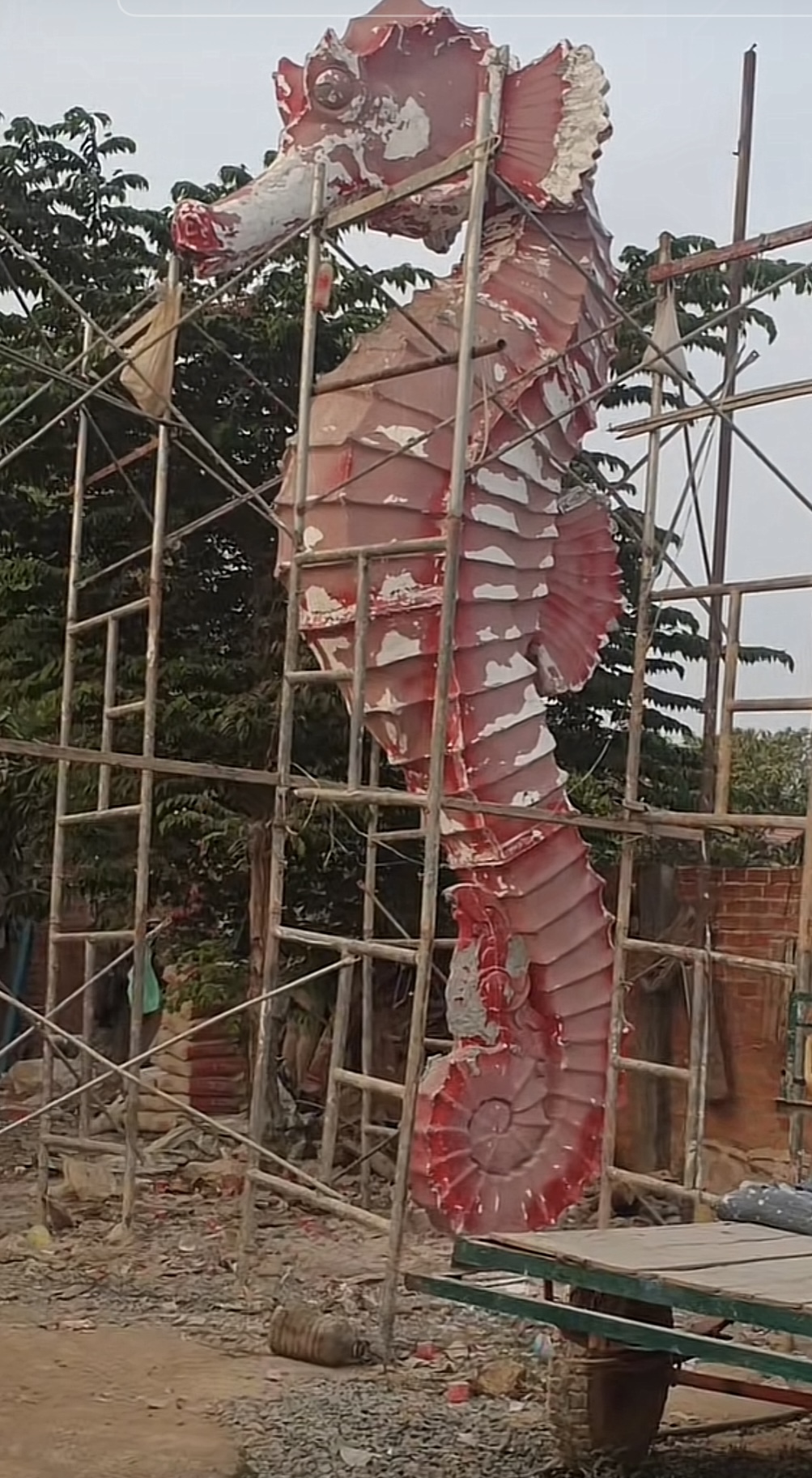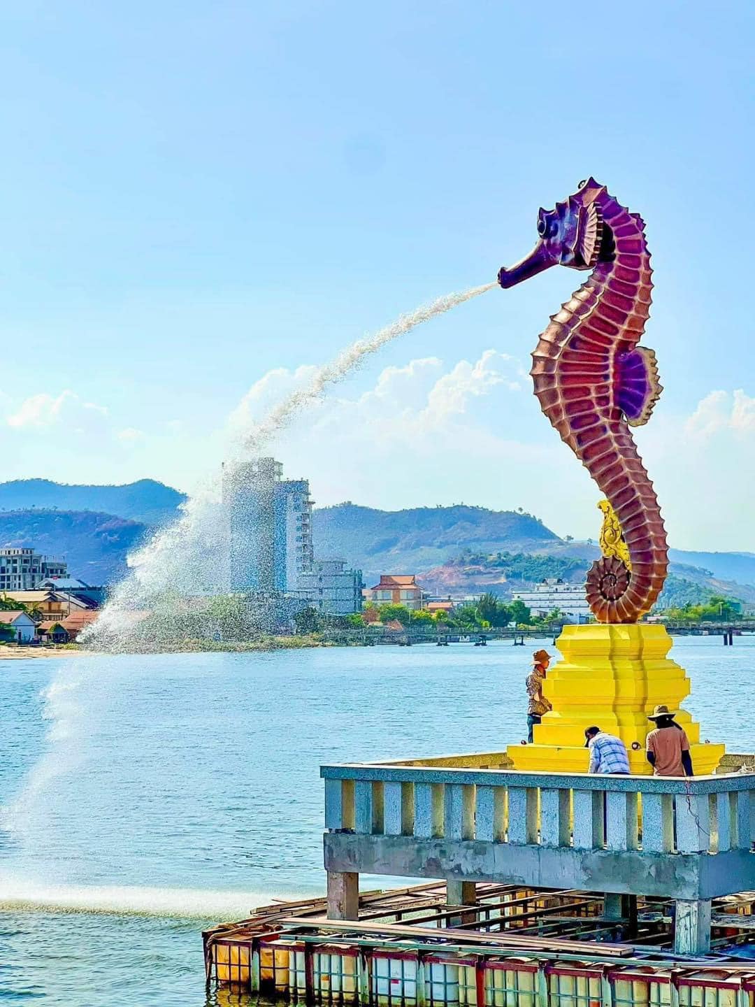 ដំបូងអ្នកអាចនឹងគិតថា រូបសេះសមុទ្របាញ់ទឹកនេះ អាចនឹងបញ្ជារការសាងសង់ពីក្រៅប្រទេសហើយ តែតាមពិតជាងចម្លាក់រូបសំណាកដ៏ធំនេះ គឺជាទឹកដៃកូនខ្មែរពិតៗ។ តាមប្រភពពីគណនី TiK Tok មួយដែលមានឈ្មោះថា Phak គឺជាជាងចម្លាក់ មានទីតាំងនៅស្រុកស្វាយអន្ទរ ខេត្តព្រៃវែង។ តាមការរៀបរាប់យុវជនម្នាក់នេះ បានបង្ហាញអំពីដំណើការដំឡើងរូបសំណាកសេះសមុទ្រ និងបញ្ជាក់ថា ត្រៀមយកទៅដំឡើងនៅឯខេត្តកំពត។ បើតាមវីដេអូខ្លីមួយរបស់ម្ចាស់គណនីតិកតុកខាងលើ គឺពិតជាបានបញ្ជាក់ច្បាស់ថា រូបគេគឺពិតជាជាងចម្លាក់ពិតប្រាកដមែន ព្រោះក្រៅពីរូបសេះសមុទ្របាញ់ទឹកនេះ នៅមានចម្លាក់ផ្សេងៗទៀត សុទ្ធតែស្អាតៗ ប្រណីតៗ គួរឱ្យសរសើរ។