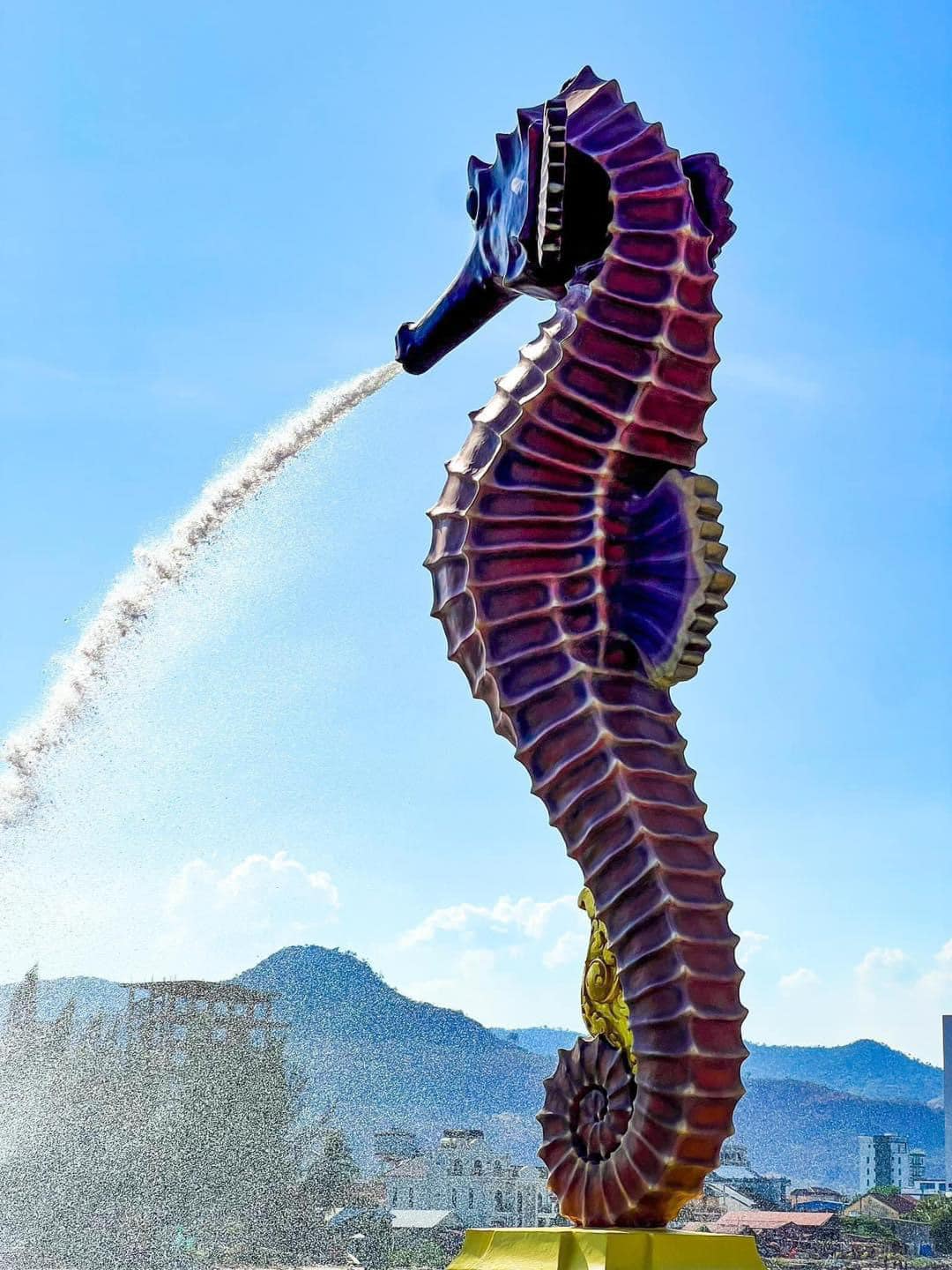 រូបសំណាកសេះសមុទ្របាញ់ទឹក ដែលទើបនឹងបើកឱ្យភ្ញៀវទេសចរទៅថតរូបកម្សាន្ត នៅខេត្តកំពត កំពុងទទួលបានការចាប់អារម្មណ៍ខ្លាំង ពីប្រជាជនកម្ពុជា ព្រោះនេះជារូបសំណាកដំបូងបង្អស់ហើយ នៅកម្ពុជាដែលមានលក្ខណៈបែបនេះ មិនចាញ់បណ្ដាប្រទេសផ្សេងៗលើពិភពលោកនោះទេ។ អ្វីដែលគួរឱ្យសរសើរនោះ ទឹកដៃជាងដំឡើងរូបសំណាកនេះពិតជាល្អ មានភាពរស់រវើក ប្រៀបដូចជាសេះសមុទ្រពិតៗដ៏ធំអស្ចារ្យ លេចអណ្ដែតឡើង នៅតាមបណ្ដោយដងព្រែកកំពត ពិតជាស្អាតទាក់ភ្នែកខ្លាំង។