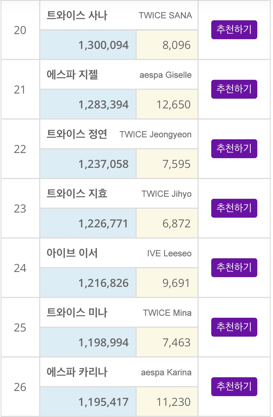 “ដូច្នេះតើនេះមានន័យថា Giselle មានប្រជាប្រិយភាពជាង Karina ឥឡូវនេះមែនទេ? Lol តាមពិតចំណាត់ថ្នាក់កេរ្តិ៍ឈ្មោះគ្រាន់តែជាពិន្ទុពីទិន្នន័យប៉ុណ្ណោះ។ វាមិនអាចកំណត់ Level របស់តារាទេ។”