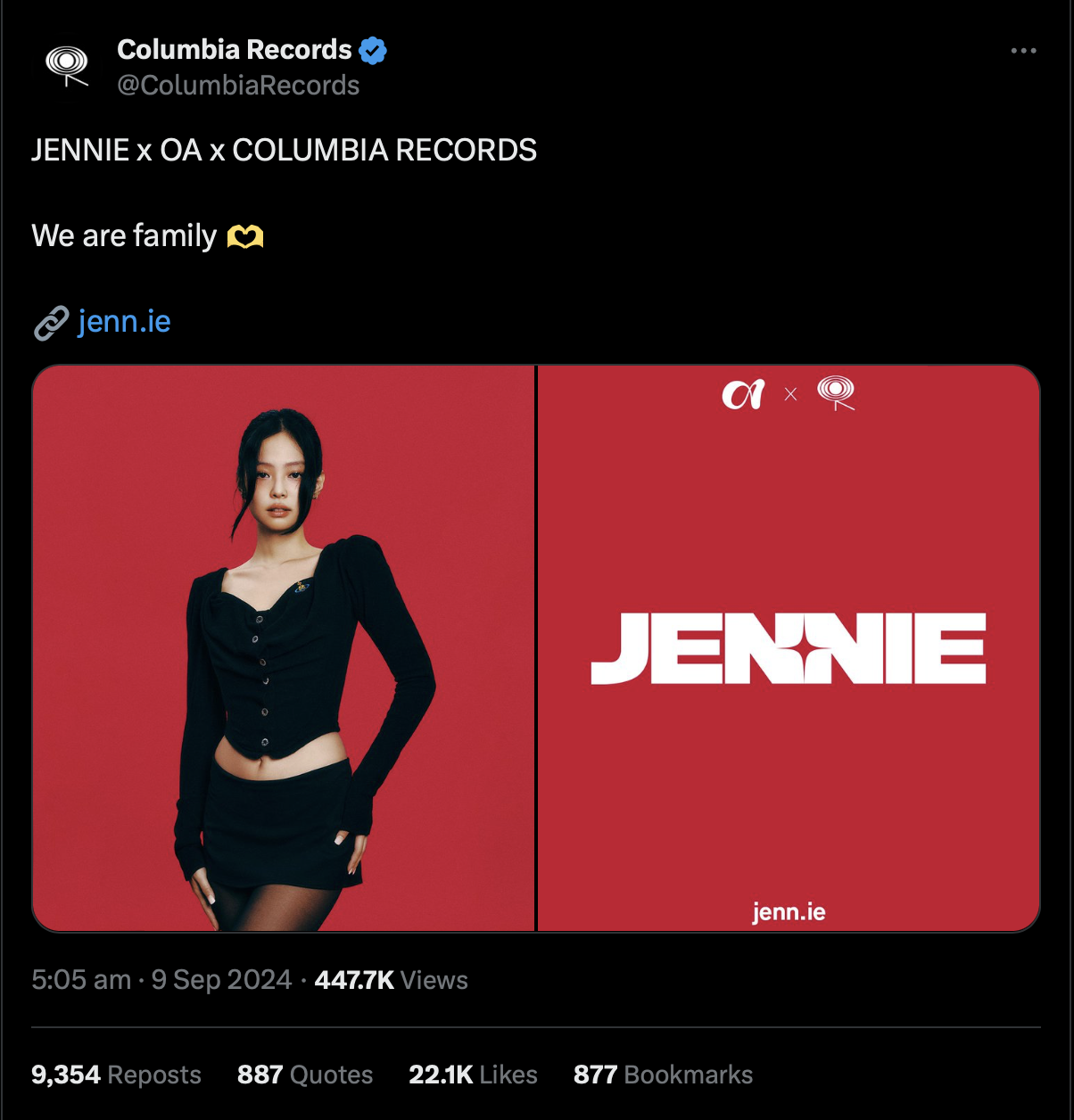 សមាជិកក្រុម BLACKPINK “Jennie Kim” បានចុះកុងត្រាជាសិល្បករទោលជាមួយក្រុមហ៊ុន Columbia Records ក្នុងភាពជាដៃគូជាមួយក្រុមហ៊ុនផ្ទាល់ខ្លួនរបស់នាង Oddatelier ដោយគ្រោងនឹងចេញបទចម្រៀងទោលថ្មីក្នុងខែតុលានេះ។