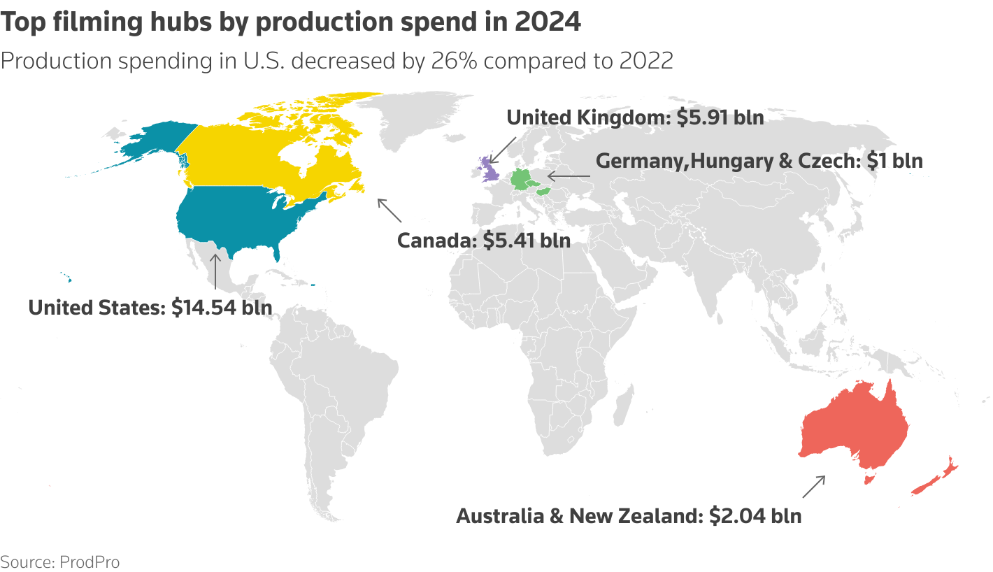 ទិន្នន័យនេះ ស្របទៅនឹងការឱ្យដឹងរបស់នាយកប្រតិបត្តិស្ទូឌីយោម្នាក់កាលពីដើមឆ្នាំ ២០២៥ ដែលថា ភាពយន្តទំនើបរបស់អាមេរិកបានប្រើប្រាស់ការផលិត ប្រាក់ហិរញ្ញប្បទាន និងការកាត់តនៅតាមបណ្ដាប្រទេសជាច្រើន ដូចជាប្រទេសកាណាដា ចក្រភពអង់គ្លេស និងអូស្ត្រាលី ដែលប្រទេសទាំងនេះបានទាក់ទាញភាពយន្តដែលចំណាយដើមទុនច្រើន ក៏ព្រោះតែមានការលើកទឹកចិត្តផ្នែកពន្ធដារ (Tax Incentives)។