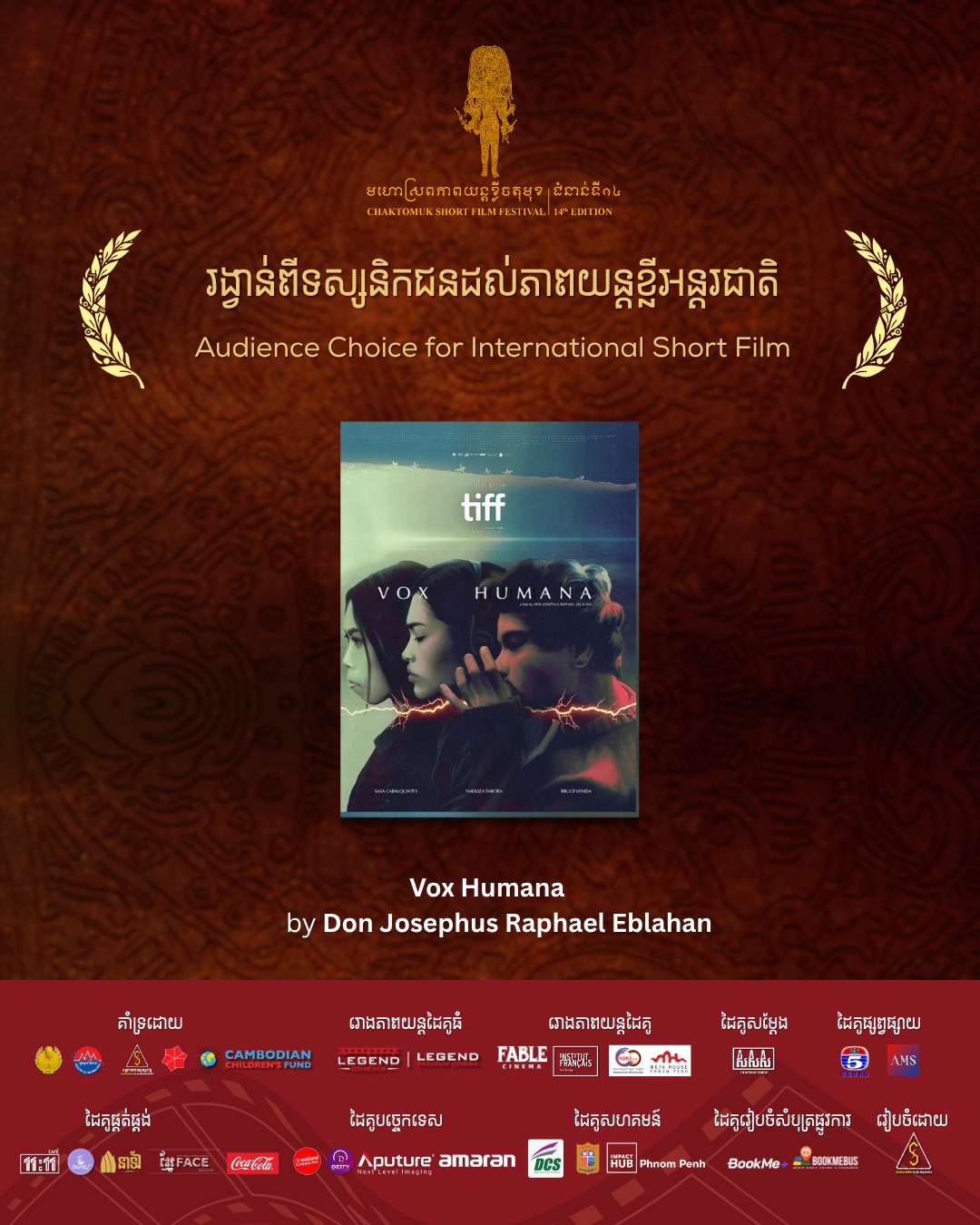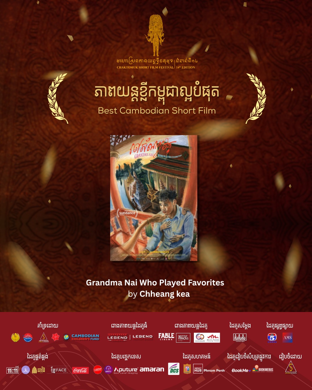 ភាពយន្តខ្លីចំនួន ៥ ចំណងជើងបានក្លាយជាជយលាភីក្នុងការប្រកួតក្នុងកម្មវិធីមហោស្រពភាពយន្តខ្លីចតុមុខជំនាន់ទី ១៤។ ក្នុងចំណោមភាពយន្តទាំង ៥ មានភាពយន្តខ្លីចំនួន ៣ រឿងផលិតក្នុងស្រុក រី២រឿងទៀតផលិតនៅក្រៅស្រុក។