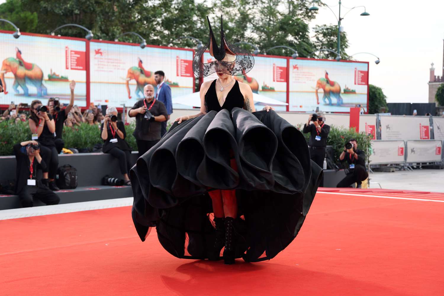 មុនការចាក់បញ្ចាំងភាពយន្ត Lady Gaga បានបង្ហាញខ្លួនក្នុងរ៉ូបពណ៌ខ្មៅដ៏សិចស៊ីនិងទាក់ទាញ រួមដំណើរដោយតួអង្គ “Joker” គឺតារាសម្ដែង Joaquin Phoenix និងអ្នកដឹកនាំរឿងលោក Todd Philips ខណៈបានទទួលការស្វាគមន៍យ៉ាងកក់ក្ដៅពីសំណាក់អ្នកគាំទ្រភាពយន្តរួមទាំងអ្នកសារព័ត៌មានយ៉ាងច្រើនកុះករ។
