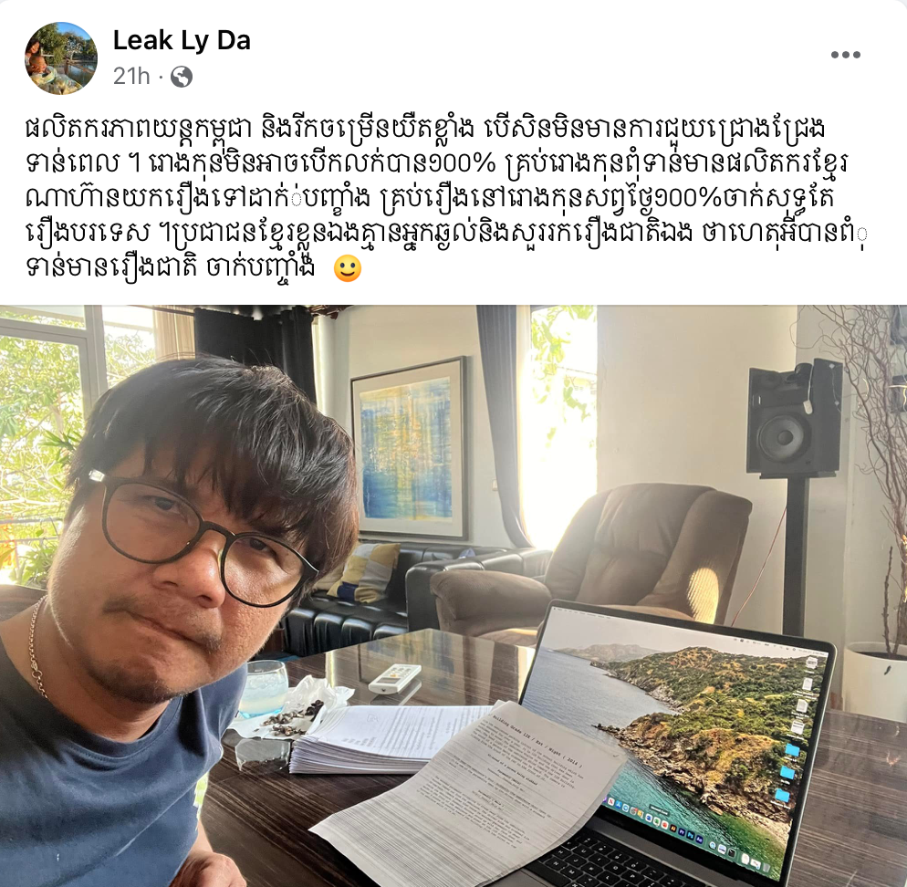 ស្របពេលភាពយន្តបរទេសកំពុងវាយលុករោងភាពយន្តខ្មែរ ហើយគ្មានវត្តមានរឿងខ្មែរតាមរោងភាពយន្តយន្តទាល់តែសោះនោះ ស្រាប់តែគេឃើញ ផលិតករភាពយន្ដ និងជាចាងហ្វាងកុនដ៏ធំមួយពីផលិតកម្ម LD Picture លោក លៀក លីដា បានបង្ហាញអារម្មណ៍ពិតចំពោះការដែលភាពយន្ដខ្មែរមានសភាពតិចជាងភាពយន្ដបរទេស និងមិនទទួលបានការជ្រោមជ្រែងណាមួយឡើយ។