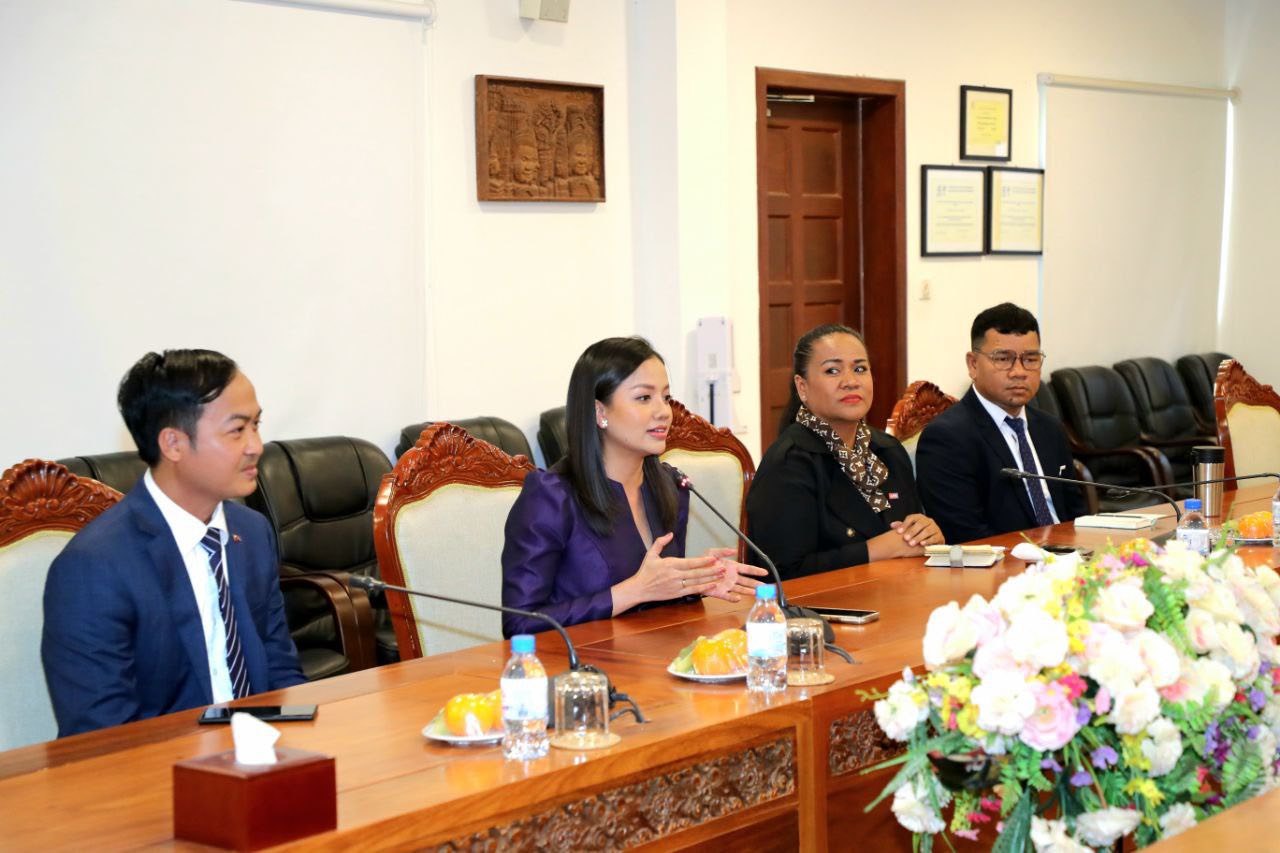 នាថ្ងៃទី២៣ ខែមេសា ឆ្នាំ២០២៥ ឯកឧត្ដម ហាប់ ទូច រដ្ឋលេខាធិការប្រចាំការ តំណាងដ៏ខ្ពង់ខ្ពស់លោកជំទាវបណ្ឌិតសភាចាររដ្ឋមន្ត្រីបានទទួលជួបលោកស្រី នុត ក្លារ៉ា នាយិកាប្រតិបត្តិក្រុមហ៊ុន អប្សរា មេឌា សឺវីស ឯ.ក (AMS) ព្រមទាំងក្រុមការងារ ដើម្បីសម្ដែងការគួរសម និងស្នើសុំកិច្ចសហការការងារក្នុងប្រព័ន្ធផ្សព្វផ្សាយ ពិសេសគម្រោងផលិតមាតិកាពាក់ព័ន្ធវិស័យវប្បធម៌ នៅទីស្ដីការក្រសួងវប្បធម៌ និងវិចិត្រសិល្បៈ។