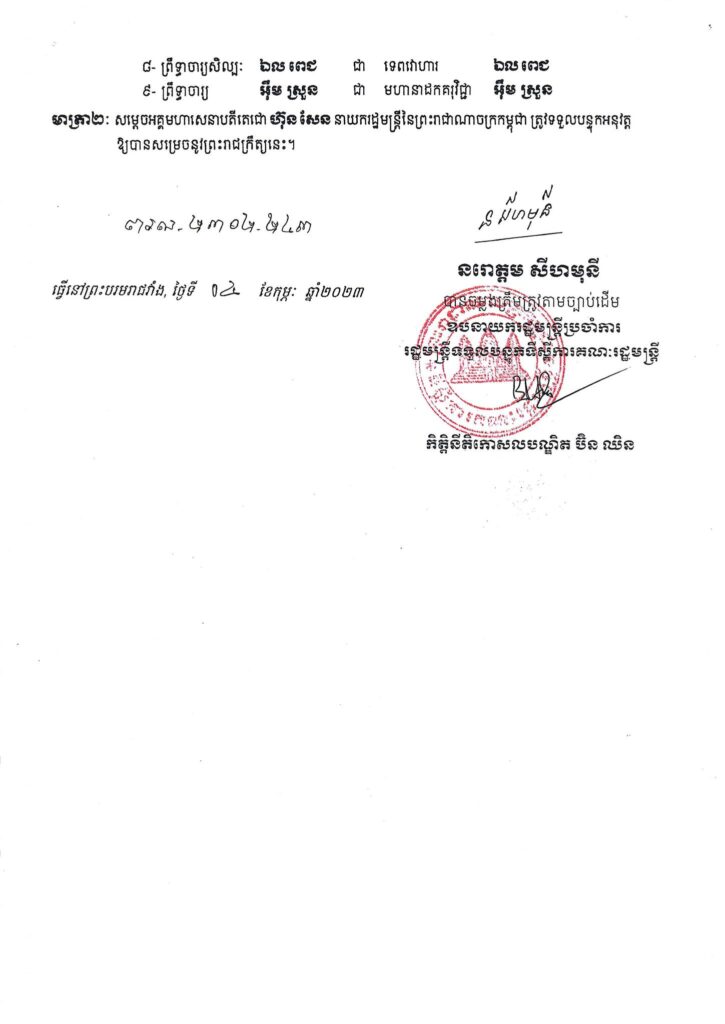 ព្រឹទ្ធាចារ្យឆ្នើម ៩ រូប ដែលមានជំនាញច្បាស់លាស់ផ្នែកសិល្បៈបុរាណ ទទួលបានការប្រោសប្រទានគោរមងារថ្នាក់ជាតិ ឬមត៌កមនុស្សរស់ ដោយព្រះករុណាព្រះបាទសម្ដេចព្រះបរមនាថ នរោត្តម សីហមុនី ព្រះមហាក្សត្រនៃព្រះរាជាណាចក្រកម្ពុជា នេះបើតាមការប្រកាសអបអរសាទរពីទំព័រហ្វេសប៊ុកផ្លូវការរបស់ ក្រសួងវប្បធម៌ និងវិចិត្រសិល្ប: កាលពីថ្ងៃសុក្រទី ១០ ខែកុម្ភៈ ឆ្នាំ ២០២៣ កន្លងទៅថ្មីៗនេះ។