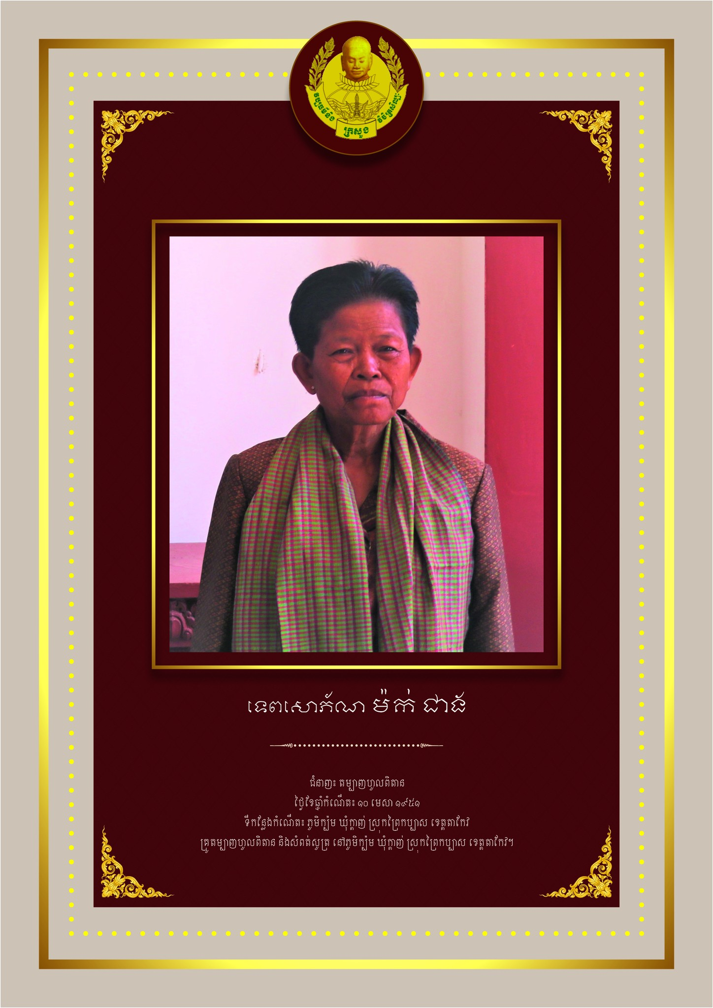 ៧ ទេពសោភ័ណ ម៉ក់ ជាង កើតនៅថ្ងៃទី ១០ មេសា ១៩៥១ មានជំនាញតម្បាញហូលពិតាន