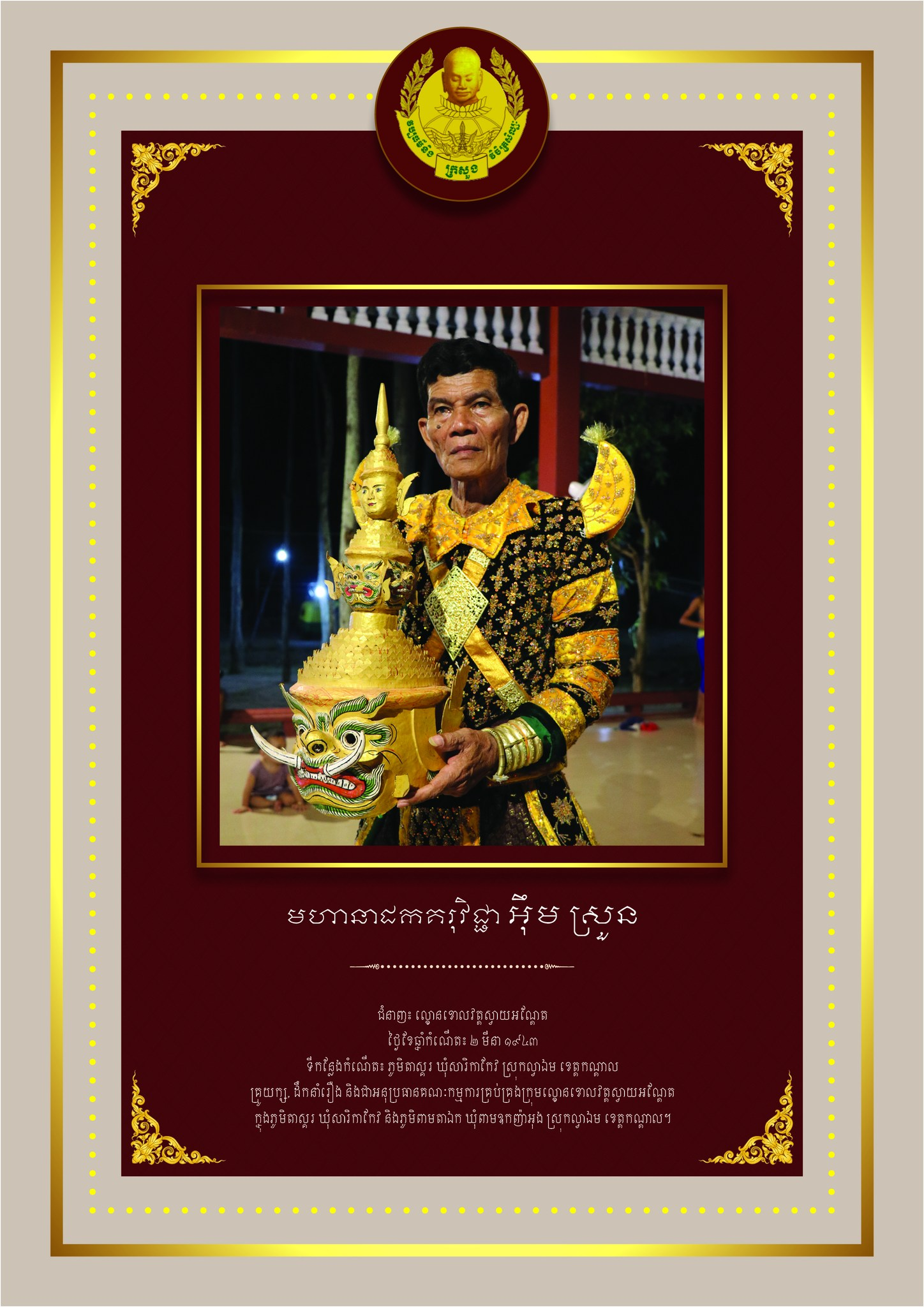 ៩ មហានាដគរុវិជ្ជា អ៊ឹម ស្រួន កើតនៅថ្ងៃទី ២ មិនា ១៩៤៣ មានជំនាញល្ខោនខោលវត្ដស្វាយអណ្ដែត៕