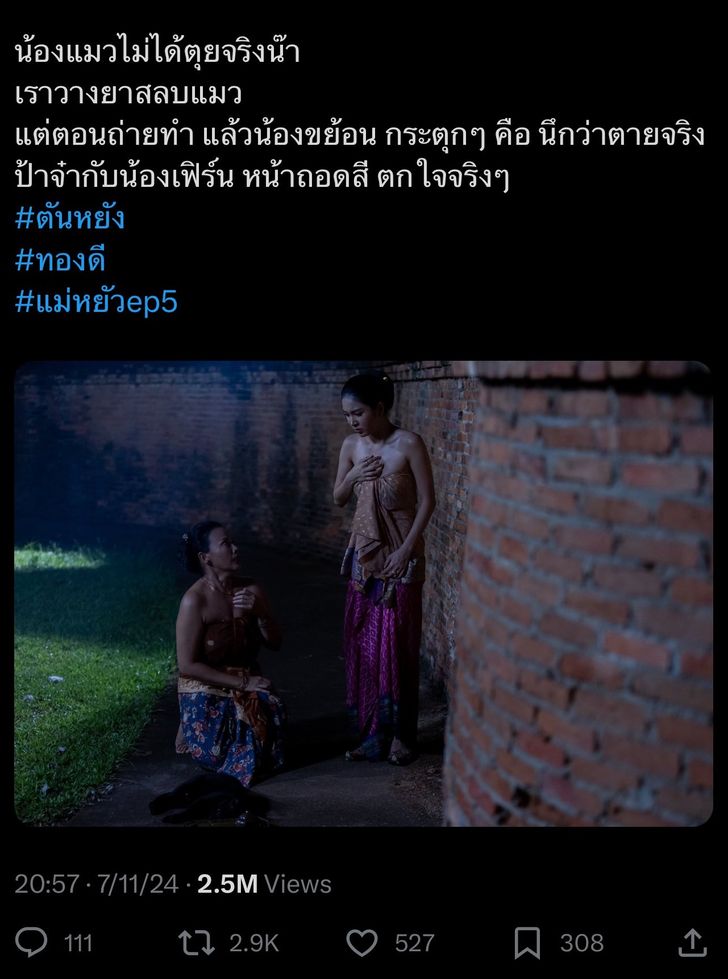 បន្ទាប់ពីទស្សនាឈុតឆាកនេះរួច ទស្សនិកជនជាច្រើនបានចេញមុខប្រឆាំងនឹងរឿងនេះនៅលើបណ្ដាញទំនាក់ទំនងសង្គម X រហូតក្លាយជាចម្រូងចម្រាស់ដ៏ក្ដៅកកុកមួយ មុននឹងលោក Sant Srikaewlaw ដែលជាអ្នកដឹកនាំរឿងចេញមុខបកស្រាយ ភ្ជាប់ជាមួយនឹងវីដេអូនៃអាការៈឆ្មារក្នុងពេលបច្ចុប្បន្ន។ លោកបានលើកឡើងថា ឆ្មារនោះមិនបានស្លាប់ពិតប្រាកដទេ នេះគ្រាន់តែការប្រើប្រាស់ថ្នាំសន្លប់ ដើម្បីការសម្ដែងតែប៉ុណ្ណោះ ក្រោមការមើលថែរបស់អ្នកជំនាញ។