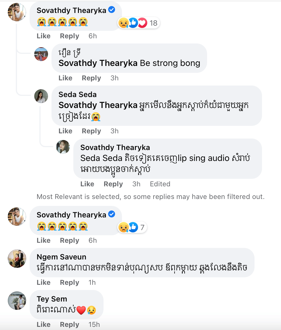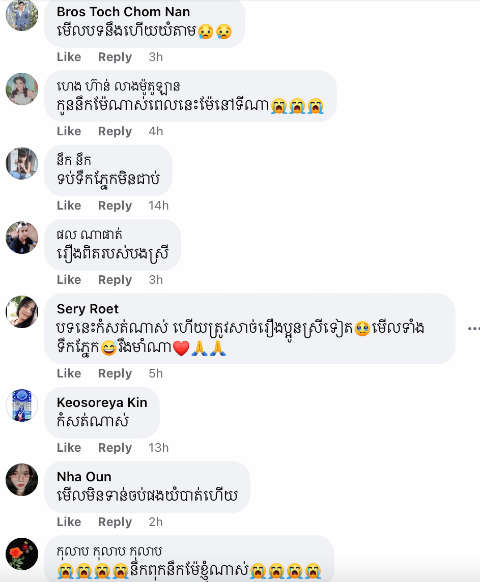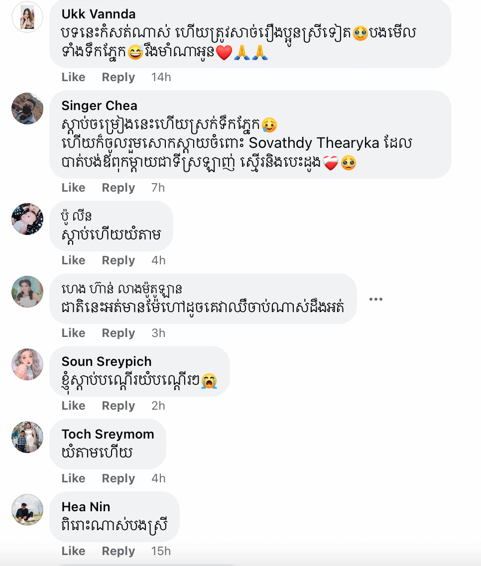 គេបានដឹងមកថា តារាស្រីរូបនេះយំឡើងស្រស្រាក់ពេលច្រៀងចម្រៀងបទនេះ ព្រោះវាត្រូវសាច់រឿងរបស់ខ្លួននាងខ្លាំងពេក។ ស្នាដៃចម្រៀងថ្មីជាចំណងដៃនារដូវបុណ្យភ្ជុំបិណ្ឌ ១បទនេះ កំពុងទាញទឹកចិត្តមហាជនឱ្យក្តុកក្តួល និងសម្រក់ទឹកភ្នែកតាមអត្ថន័យបទចម្រៀងនេះ។ ម៉្យាង គួបផ្សំរឿងពិតដែល ធារិកា បានជួបផងនោះ ធ្វើឱ្យអ្នកស្តាប់ហើយក្តុកក្តួលជាខ្លាំង រហូតមានអ្នកខ្លះស្រក់ទឹកភ្នែកតាមទំនួញយំរបស់ ធារីកា ថែមទៀតផង។