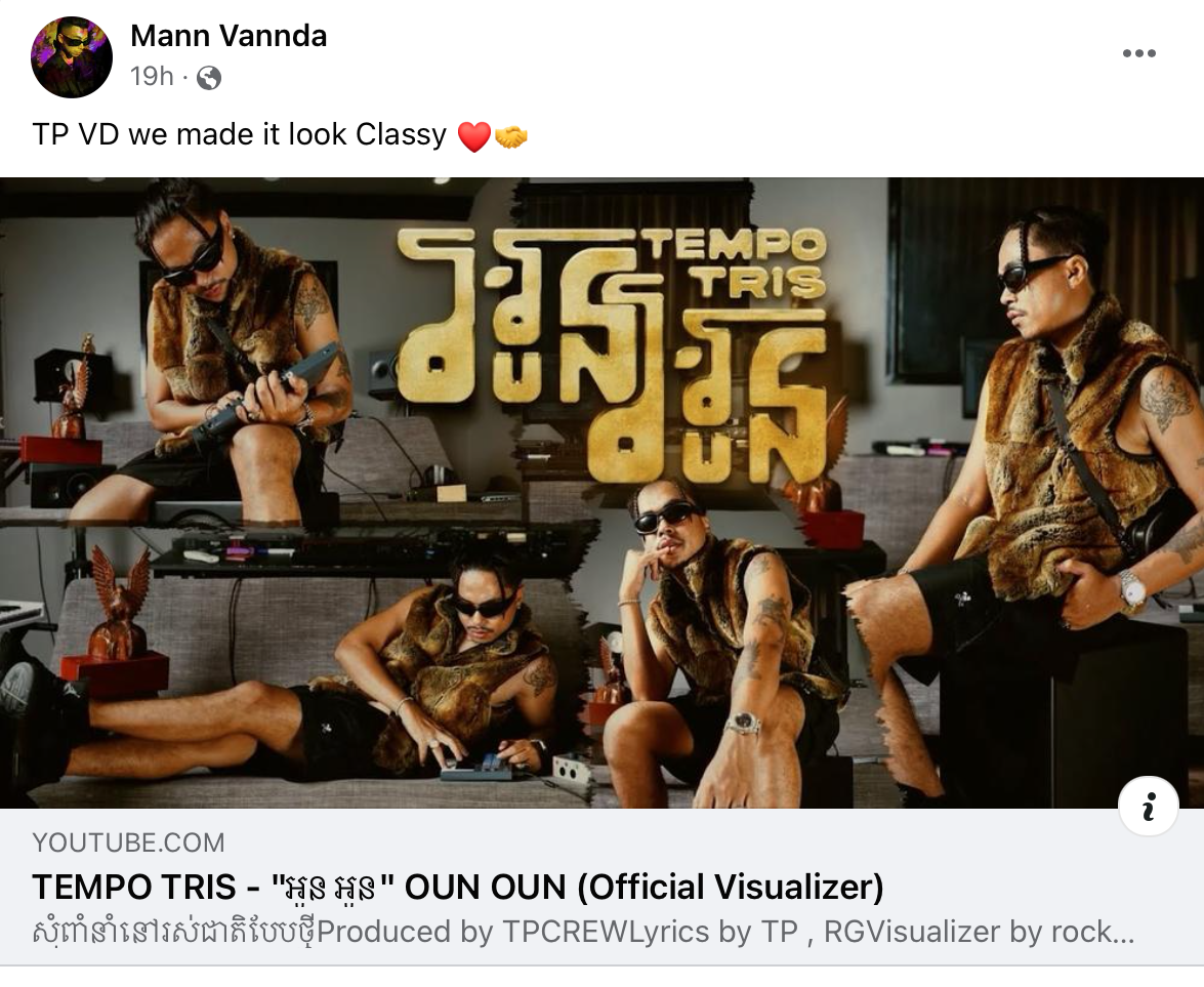 មិនត្រឹមទាក់ទាញចិត្តយុវវ័យខ្លាំងប៉ុណ្ណោះទេ សូម្បីតារាចម្រៀងរ៉េបពេញសមត្ថភាព វណ្ណដា ក៏បានចែករំលែកបទចម្រៀងនេះលើគណនីហ្វេសប៊ុកផ្លូវការលោកផងដែរ ថែមទាំងដាក់ Caption ថា៖ «TP VD we made it look Classy»។