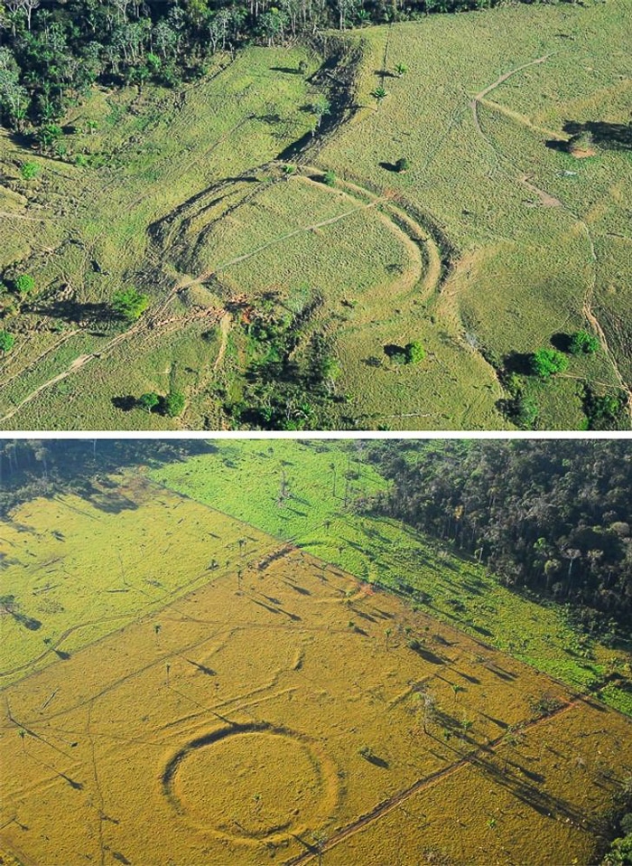 មានការសិក្សាភូមិវិទ្យាព្រៃឈើនៅតំបន់ព្រៃ Amazon ជាប្រចាំ តែអ្នកវិទ្យាសាស្ត្រមានការភ្ញាក់ផ្អើលជាមួយនឹងការប្រទះឃើញស្នាមរង្វង់ជាច្រើនកន្លែងគូសវាសយ៉ាងធំនៅក្នុងតំបន់នៃព្រៃ Amazon។អ្នកជំនាញបានឲ្យដឹងថា ការប្រទះឃើញស្នាមរង្វង់ជាង ៤៥០ កន្លែងនេះគឺជាការប្រកបធ្វើពិធីអ្វីម្យ៉ាងរបស់មនុស្សបុរាណដែលមានអាយុកាលជាង ៣០០០ ទៅ៣៥០០ឆ្នាំ។