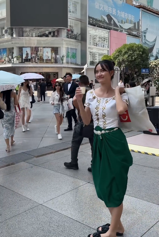 ធីតាឯកសង្ក្រាន្តឆ្នាំ ២០២១ រូបនេះត្រូវបានប្រជាជនចិនសួរនាំថាមកពីណា ពេលនាងចូលក្នុងហាងទំនិញ ទាំងសម្លៀកបំពាក់បុរាណខ្មែរ។ នាងក៏បានឆ្លើយតបថា នាងជាខ្មែរ និងប្រាប់ថាសម្លៀកបំពាក់នាងស្លៀកគឺជាសម្លៀកបំពាក់របាំខ្មែរយ៉ាងជឿជាក់ប្រាប់ទៅអ្នកដែលសួរ។ បន្ទាប់មកជនជាតិចិនសុទ្ធតែបានសរសើរពីភាពស្រស់ស្អាត និងប្រណីតភាពនៃសម្លៀកបំពាក់នោះផង។
