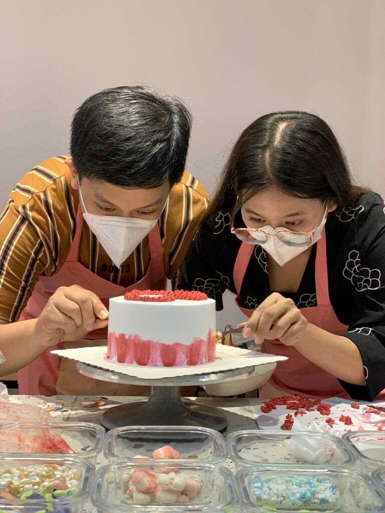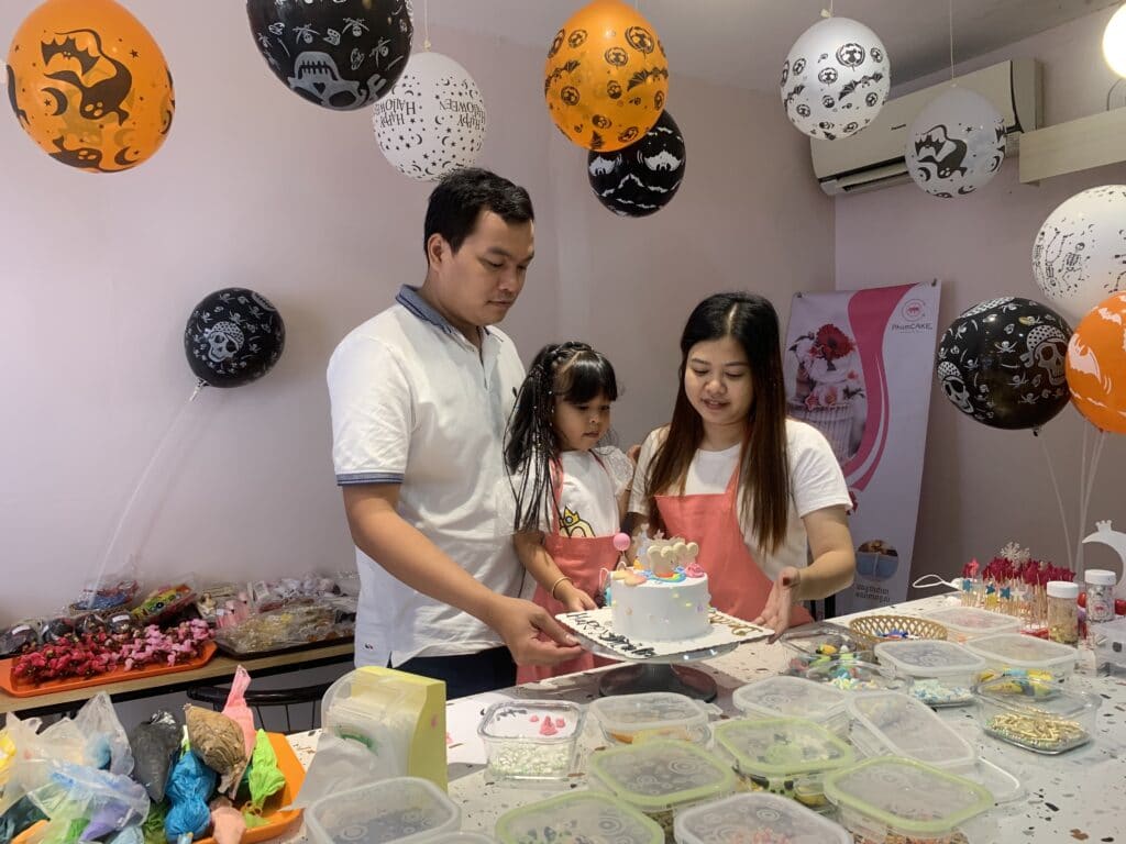 ដើម្បីឱ្យអាចដេគ័រខេកបានដោយខ្លួនឯងអតិថិជនគ្រាន់តែធ្វើការកុម្ម៉ង់នំទុកមុនចាប់ពីតម្លៃ 20$ ឡើងទៅនោះក្រុមការងារហាងភូមិខេកនឹងរៀបចំខេកក៏ដូចជាសម្ភារៈដេគ័រផ្សេងៗដូចជាគ្រីម ស្ករសម្រាប់តុបតែងលើខេកជាដើម។ ក្នុងការដេគ័រខេកដោយខ្លួនឯងហាងភូមិខេកនឹងរៀបចំឱ្យមានបុគ្គលិកម្នាក់ឈរចាំជួយអតិថិជន ណែនាំអតិថិជនពីរបៀបបាញ់គ្រីម និងដេគ័រយ៉ាងណាឱ្យដូចទៅនឹងរូបដែលអតិថិជនចង់បាន។ សម្រាប់រសជាតិនៃខេកនៅទីនេះមាន ៤ រសជាតិគឺរសជាតិតយដូង រសជាតិវ៉ាន់នីឡា រសជាតិសូកូឡា និងរសជាតិស្រ្តបឺរី។