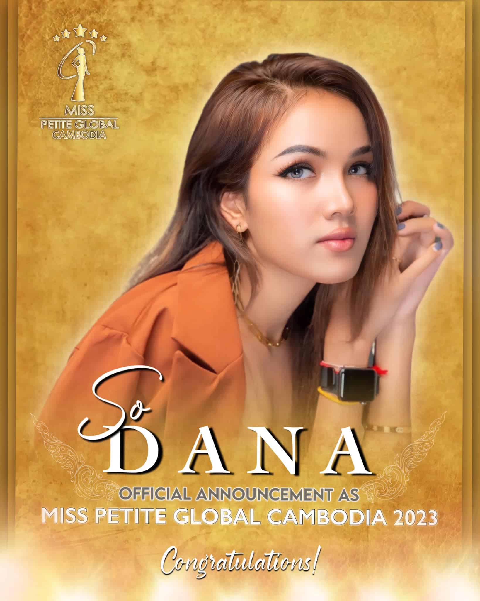 ក្រុមហ៊ុន Cambodia International Models (CIM) ថ្មីៗនេះ ទើបប្រកាសជ្រើសរើស សូ​ ដាណា ដែលមានឈ្មោះពិតថា សុខ ណា ជា Miss Petite Global Cambodia 2023 បន្ទាប់ពីសារី ស្រីពេជ្រ ជយលាភី Miss Petite Global 2022។ សូ​ ដាណា មានអាយុ ២៨ ឆ្នាំ ជាតារាម៉ូដែលតាំងពីឆ្នាំ ២០១៦ បច្ចុប្បន្ននាងជាម្ចាស់សាឡន និងគ្លីនីកកែសម្ផស្ស​ N5 Beauty