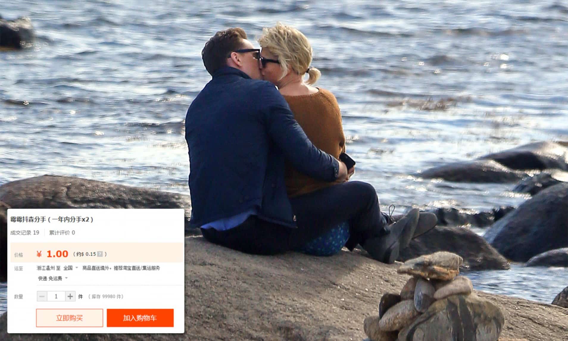 ក្នុងឆ្នាំ ២០១៦ នៅលើគេហទំព័រពាណិជ្ជកម្មអេឡិចត្រូនិកដ៏ធំនៅក្នុងប្រទេសចិន Taobao មានសេវាកម្មធានារ៉ាប់រងការបែកបាក់ស្នេហារបស់គូស្នេហ៍ល្បីៗដូចជា Taylor Swift ជាមួយ Tom Hiddleston ជាដើម។ តម្លៃចាប់ពី ១ យ័ន ឬ ០.១ ដុល្លារឡើងទៅ បើគូស្នេហ៍តារាទាំងនោះពិតជាបែកគ្នាមែន អ្នកដែលទិញធានារ៉ាប់រងនឹងទទួលបានប្រាក់ត្រឡប់មកវិញ ២-៣ ដង។ សេវាកម្មនេះក៏រងការរិះគន់យ៉ាងខ្លាំងដែរ ព្រោះវាស្ទើរតែមិនខុសពីល្បែងស៊ីសង។