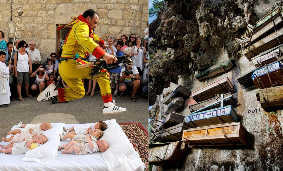 ចំណែកឯអ្នកស្រុកមួយក្នុងប្រទេសអេស្ប៉ាញក៏មានវប្បធម៌មួយដ៏ចម្លែកផងដែរដែលគេហៅថាពិធីបុណ្យ El Colacho ឬពិធីលោតរំលងទារក។ គេបានប្រារព្ធពិធីមួយនេះតាំងពីឆ្នាំ ១៦២០ មកម្ល៉េះ។ នៅក្នុងពិធីបុណ្យនេះ គេនឹងដាក់ឱ្យទារកនៅលើពូកកណ្ដាលផ្លូវ ហើយឱ្យមនុស្សដែលតែងខ្លួនដូចជាអារក្ស (devil) លោតរំលង។ ពួកគេជឿជាក់ថាការធ្វើបែបនេះគឺអាចបណ្ដេញអារក្ស ឬព្រាយបិសាចដែលមានបំណងធ្វើបាបកូនរបស់គេបាន។