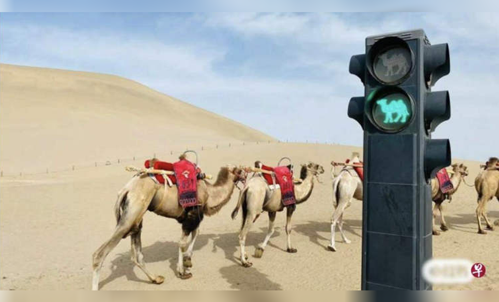 ធ្លាប់តែឃើញភ្លើងស្តុបរូបមនុស្ស តែនៅតំបន់វាលខ្សាច់មួយនេះមានភ្លើងស្តុបរូបអូដ្ឋ ខណៈអ្នកជិះអូដ្ឋកើនខ្លាំងពេក