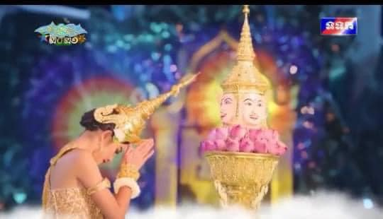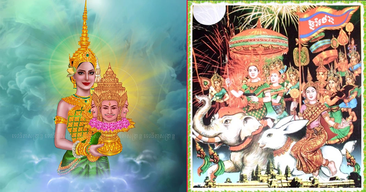 នោះព្រះអាទិត្យចរចេញពីមីនរាសី ទៅស្ថិតនៅមេសរាសី ដើរតាមគោវិថី គឺផ្លូវកណ្តាល ទើបមានទេពធីតាមួយព្រះអង្គ ជាមគ្គនាយិកាព្រះនាម កិមិរាទេវី (បុត្រទី៦) គង់នៅចាតុម្មហារាជិកា ទ្រង់អម្ពរពណ៌ សេត(ពណ៌ស)សៀតផ្កាចង្កុលណី (វារីជាតិប្រភេទឈូក) អាភរណៈ បុស្បរាគ័ម (ត្បូងថ្មពណ៌លឿង) ភក្សាហារ ចេកណាំវ៉ា ឬចេកទឹក ព្រះហស្តស្ដាំទ្រង់ព្រះខ័ន ព្រះហស្តឆ្វេងទ្រង់ ពិណ(ចាបុី) គង់លើខ្នង មាហឹស: (សត្វក្របី) ជាពាហនៈ។ នាំអោយពួកនិករ បវរកញ្ញាទាំងមួយសែនកោដិ ហោះទៅកាន់គុហាកែវឈ្មោះ គន្ធមាលី នាទីភ្នំកៃលាស់ ខេត្តហេមពាន្ត ដែលប្រតិស្ថានទុកព្រះសិរសាកបិលមហាព្រហ្ម តម្កល់លើពានមាស នាំចេញមកដង្ហែប្រទក្សិណភ្នំព្រះសុមេរុរាជ ជុំចក្រវាឡ តាមផ្លូវព្រះអាទិត្យចរជាគម្រប់ ៦០នាទី ហើយដង្ហែចូលទៅតម្កល់ទុកដូចដើមវិញទើបប្រជុំទេវបុត្រ ទេពធីតាទាំងមួយសែនកោដិ ចូលទៅស្រង់ទឹកអន្តោតត្តមហាស្រះ ដែលមានទឹកហូរចេញពីបំពង់ថ្មកែវ ជាមាត់គោឧសភរាជទាំង៧ ត្រជាក់ត្រជុំក្សេមក្សាន្តព្រះរាជហឫទ័យ ទើបនាំគ្នាចូលទៅសមាទានសីលដោយព្រះទ័យសោមនស្សរីករាយគ្រប់ៗអង្គ ក្នុងភគវតីសភាដែលវិស្សកម្មទេវបុត្រនិមិត្តថ្វាយ ហើយបន្ទោបង់នូវអពមង្គលឱ្យជ្រះស្រឡះ ចម្រើននូវសុភមង្គលសិរីសួស្តី ជន្មាយុយឺនយូរតរៀងទៅ។