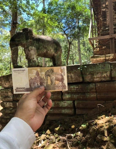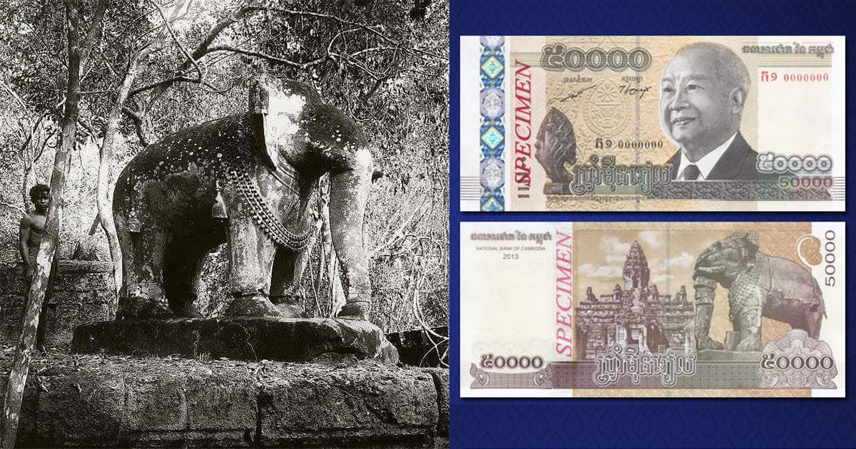 ក្រដាសប្រាក់ ឬធនបត្រប្រភេទ ៥ មុឺនរៀល ដែលមានពណ៌ស្លាទុំ លាយពណ៌ត្នោតត្រូវបាន ធនាគារជាតិកម្ពុជា ប្រកាសចេញផ្សាយចរាចរប្រើប្រាស់ជាផ្លូវការតាំងថ្ងៃទី ៥ ខែឧសភា ឆ្នាំ ២០១៤ មានលក្ខណៈពិសេសយ៉ាងលម្អិត និងពោរពេញទៅដោយអត្ថន័យដូចទៅនឹងក្រដាសប្រាក់ដទៃទៀតរបស់ខ្មែរ។ ជុំវិញភាពលម្អិត នៅលើក្រដាសប្រាក់ដ៏ពេញនិយមមួយប្រភេទនេះ គេសង្កេតឃើញថាប្រជាជនខ្មែរយើងហាក់ចាប់អារម្មណ៍ទៅនឹងចម្លាក់សត្វដំរីនៅផ្ទៃខាងក្រោយនៃក្រដាសប្រាក់មួយនេះ ថាតើជាចម្លាក់ពិតដែលមានទីតាំងនៅទីណាមួយ ឬគ្រាន់ជារូបគំនូរ។