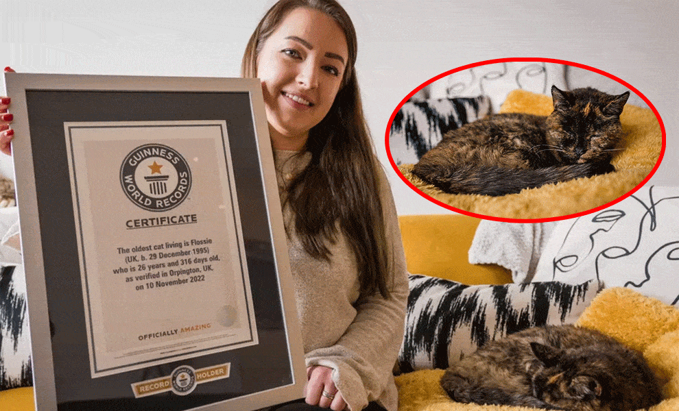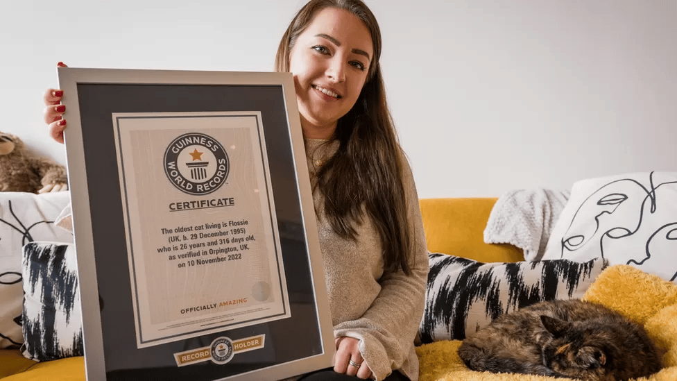 Flossie ជាឆ្មាមួយក្បាលដើមកំណើតចក្រភពអង់គ្លេសត្រូវបានគេដាក់ឈ្មោះជាឆ្មាចាស់បំផុតក្នុងពិភពលោកថ្មីៗនេះ មុនថ្ងៃកំណើតអាយុ ២៧ ឆ្នាំរបស់វា។ Flossie មានអាយុ ២៦ឆ្នាំ និង៣២៩ថ្ងៃ ដែលប្រៀបធៀបនឹងមនុស្សគឺដូចជាមនុស្សអាយុ ១២០ឆ្នាំ។ ឆ្មាញីដ៏ចំណាស់មួយនេះរស់នៅតំបន់ Orpington ត្រូវបានបញ្ជាក់ថាជាឆ្មាដែលចំណាស់ជាងគេបំផុតដោយ Guinness World Records។