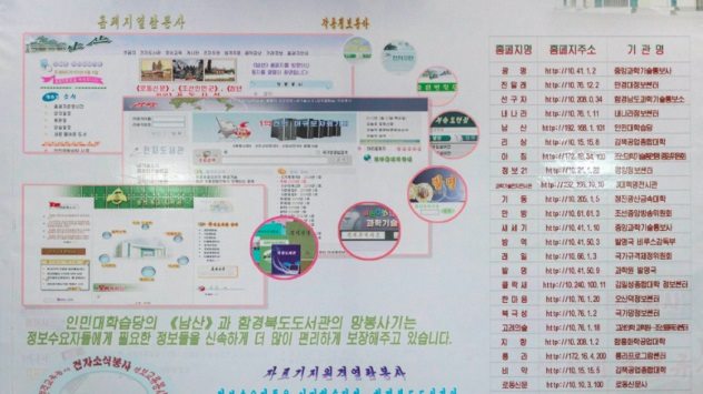 ប្រជាជនកូរ៉េខាងជើង ត្រូវបានកំណត់ឱ្យប្រើប្រាស់តែវេបសាយរបស់រដ្ឋាភិបាលអនុញ្ញាតប៉ុណ្ណោះ ដែលបើកឱ្យប្រើតាមបណ្ណាល័យសាកលវិទ្យាល័យ ឬស្ថាប័នរដ្ឋាភិបាលប៉ុណ្ណោះ។ សេវាកម្ម Intranet នៅកូរ៉េខាងជើងមានឈ្មោះថា Kwangmyong មានគេហទំព័រនៅលើបណ្តាញប្រហែល ១០០០ ទៅ ៥០០០ ដែលត្រូវបានគ្រប់គ្រងដោយរដ្ឋាភិបាល។ មាតិកាភាគច្រើនទាក់ទងទៅនឹងសកម្មភាពរបស់មេដឹកនាំ គីម ជុងអ៊ុន។ ប្រសិនបើមានឈ្មោះ គីម ជុងអ៊ុននៅលើគេហទំព័រ អក្សរត្រូវតែលេចធ្លោ ធំ ដិតជាងតួអត្ថបទ ២០%។