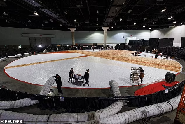 ភីហ្សាយក្សមួយនេះប្រើម្សៅចំនួន ៦១៩២គីឡូក្រាម, ទឹកជ្រលក់ marinara ផ្អែម ២២៣៣គីឡូក្រាម, ឈីសជាង ៣៩៩១គីឡូក្រាម និងម្ទេសប្លោក ៦៣០ ៤៩៦ដុំ។ លើសពីនេះនំដ៏ធំប៉ុនអគារត្រូវបានដុតដោយរូបមន្តពិសេសឈ្មោះថា “The Big New Yorker” នៅមជ្ឈមណ្ឌលសន្និបាត Los Angeles។