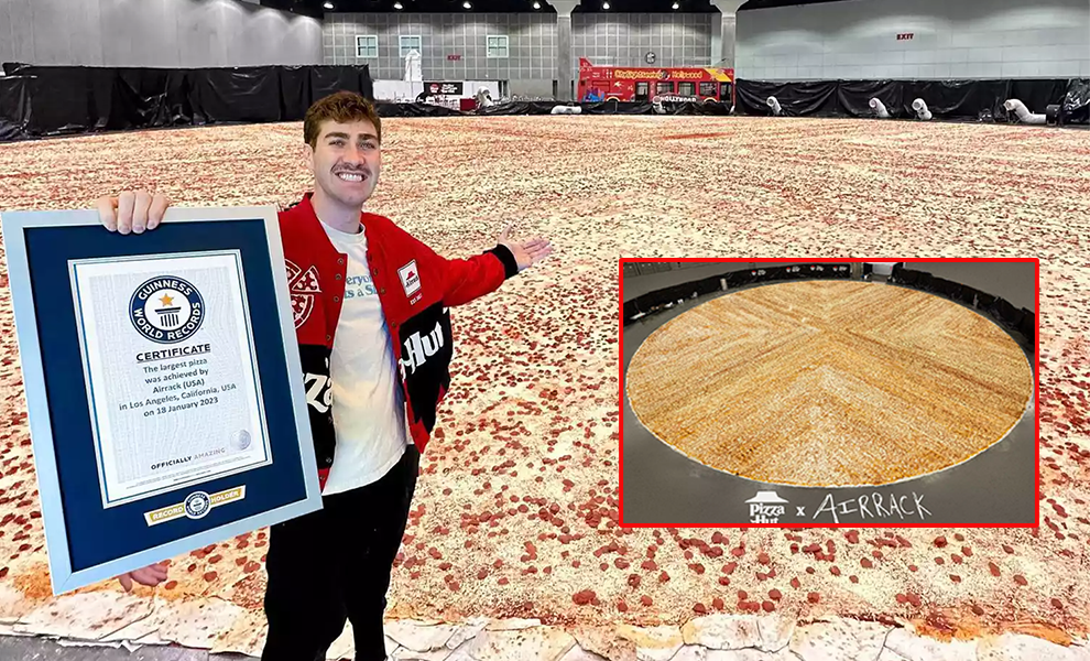 Pizza Hut បានកាន់កាប់កំណត់ត្រាពិភពលោក Guinness សម្រាប់ «ភីហ្សាធំបំផុតរបស់ពិភពលោក» ជាផ្លូវការ និងយ៉ាងមោទនភាព ក្រោយការចាប់ផ្ដើមធ្វើនំមួយនេះតាំងពីថ្ងៃទី ១៨ ខែមករា ដែលមានទំហំជាង ១៣០០ម៉ែត្រការ៉េ ក្នុងទីក្រុង Los Angeles ។