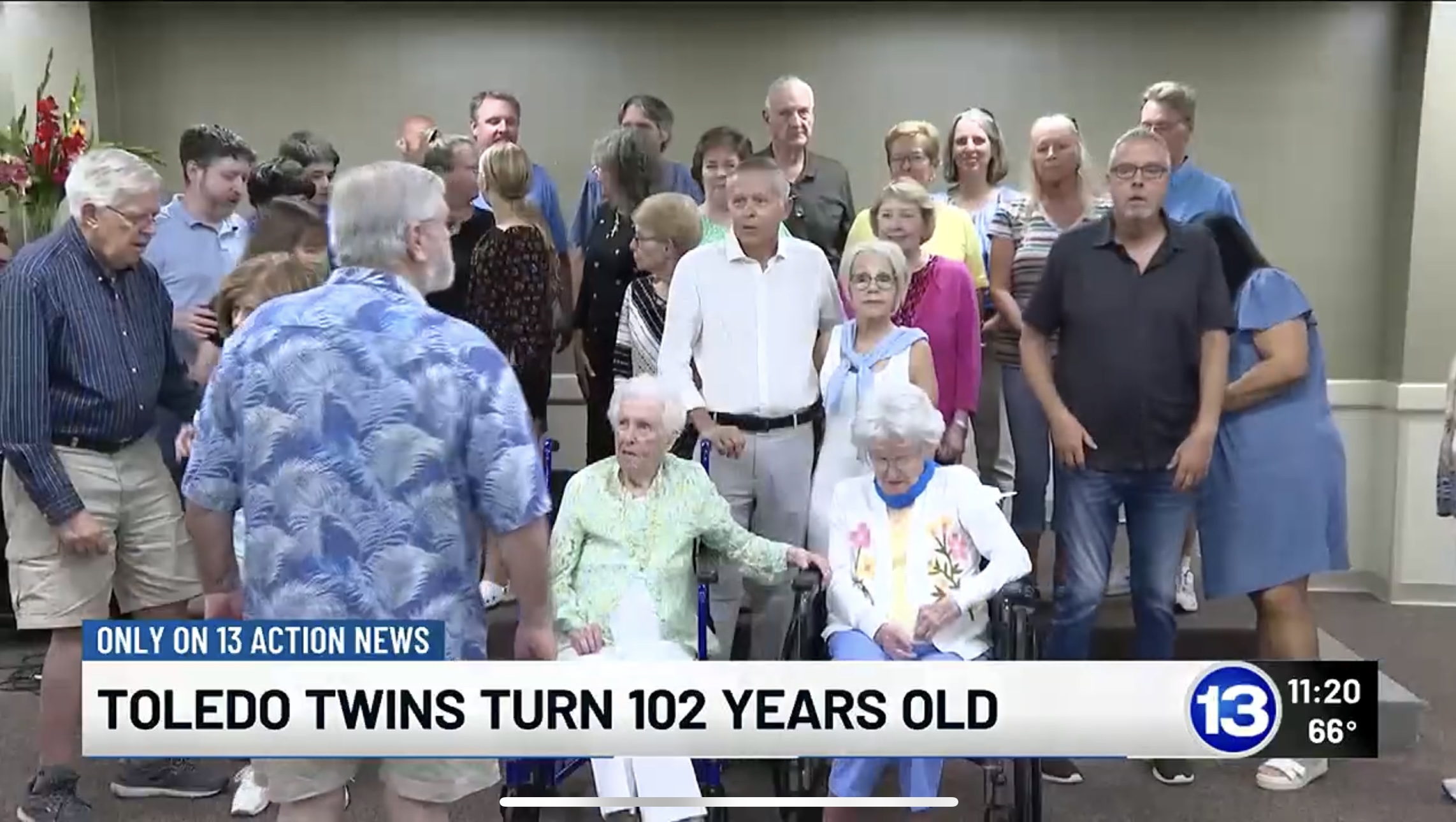 លោកយាយ Marilyn Wright និងលោកយាយ Madelyn Casper បានអបអរសាទរខួបកំណើតវ័យ ១០២ ឆ្នាំជាមួយគ្រួសារ និងកូនទាំង ១៣ នាក់ ព្រមទាំងបង្ហើបពីការថែរក្សាសុខភាពឱ្យមានអាយុវែងដោយមិនអស់ប្រាក់មួយរៀល។