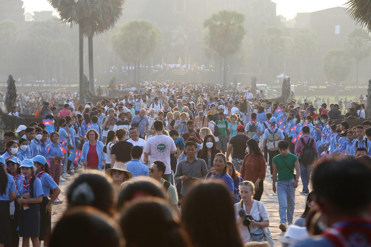 ថ្ងៃដ៏អស្ចារ្យនេះ បានទាក់ទាញភ្ញៀវទេសចរជាតិ និងអន្តរជាតិ ប្រមាណជាង១ម៉ឺននាក់ចូលរួមទស្សនាថ្ងៃរះចំកណ្តាលកំពូលប្រាសាទអង្គរវត្ត ក៏ដូចជាចូលរួមអបអរដំណើរនៃការរត់ព្រះអគ្គីកីឡាជុំវិញវង់តូចនៃឧស្យានអង្គរ។