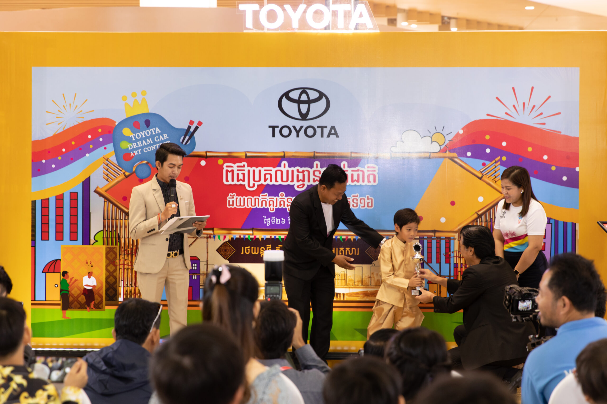 កម្មវិធី ប្រគល់រង្វាន់ជ័យលាភីថ្នាក់ជាតិនៃកម្មវិធី “ប្រកួតប្រជែងគូរគំនូររថយន្តក្នុងក្តីស្រមៃសម្រាប់ថ្ងៃអនាគតលើកទី១៦“ មានការអញ្ជើញចូលរួមក្រោមអធិបតីភាពរបស់អគ្គនាយកក្រុមហ៊ុន តូយ៉ូតា(ខេមបូឌា) លោក រីអូជិ ហ្វូជីតា (Ryoji Fujita) ព្រមទាំងថ្នាក់ដឹកនាំ បុគ្គលិក នៃក្រុមហ៊ុន តូយ៉ូតា (ខេមបូឌា) ឪពុក ម្តាយ អាណាព្យាបាល លោកគ្រូ អ្នកគ្រូ កុមារាកុមារីដែលជាម្ចាស់ជ័យលាភី ជាច្រើនទៀត។