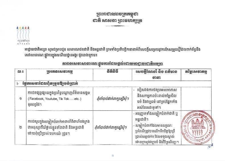 សូមមើលសេចក្ដីកែប្រែរបស់អាជ្ញាធរជាតិអប្សរាដូចខាងក្រោម៖